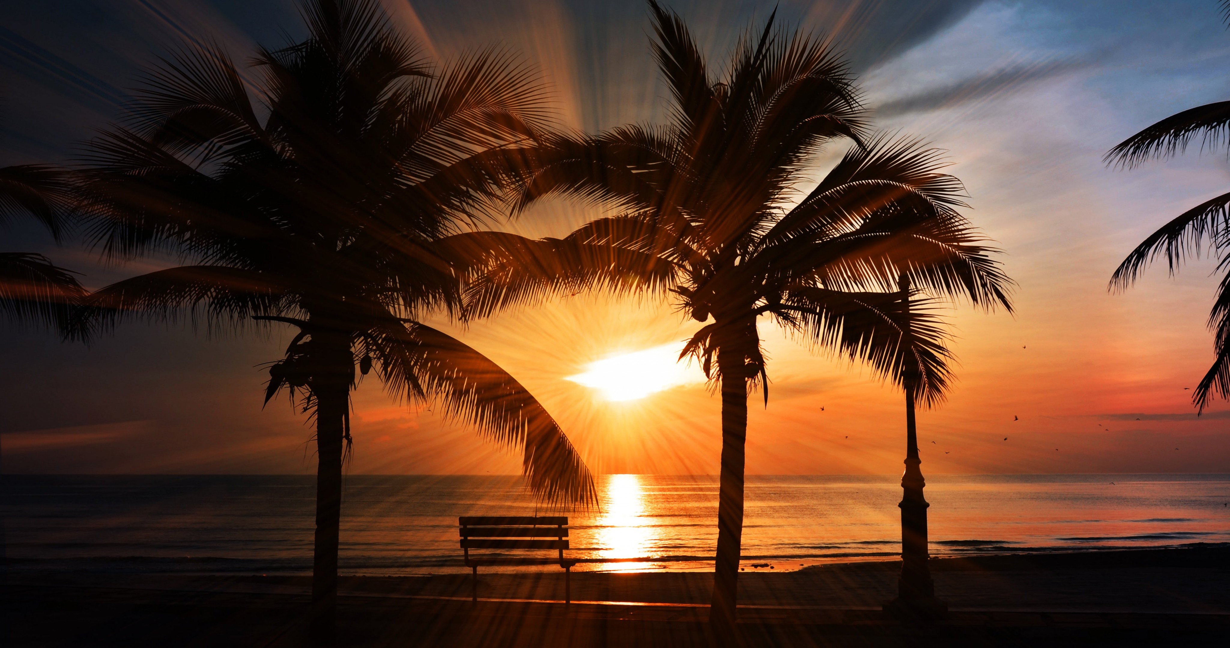 Beach Sunset Benches of Palms - 4096x2160 4K