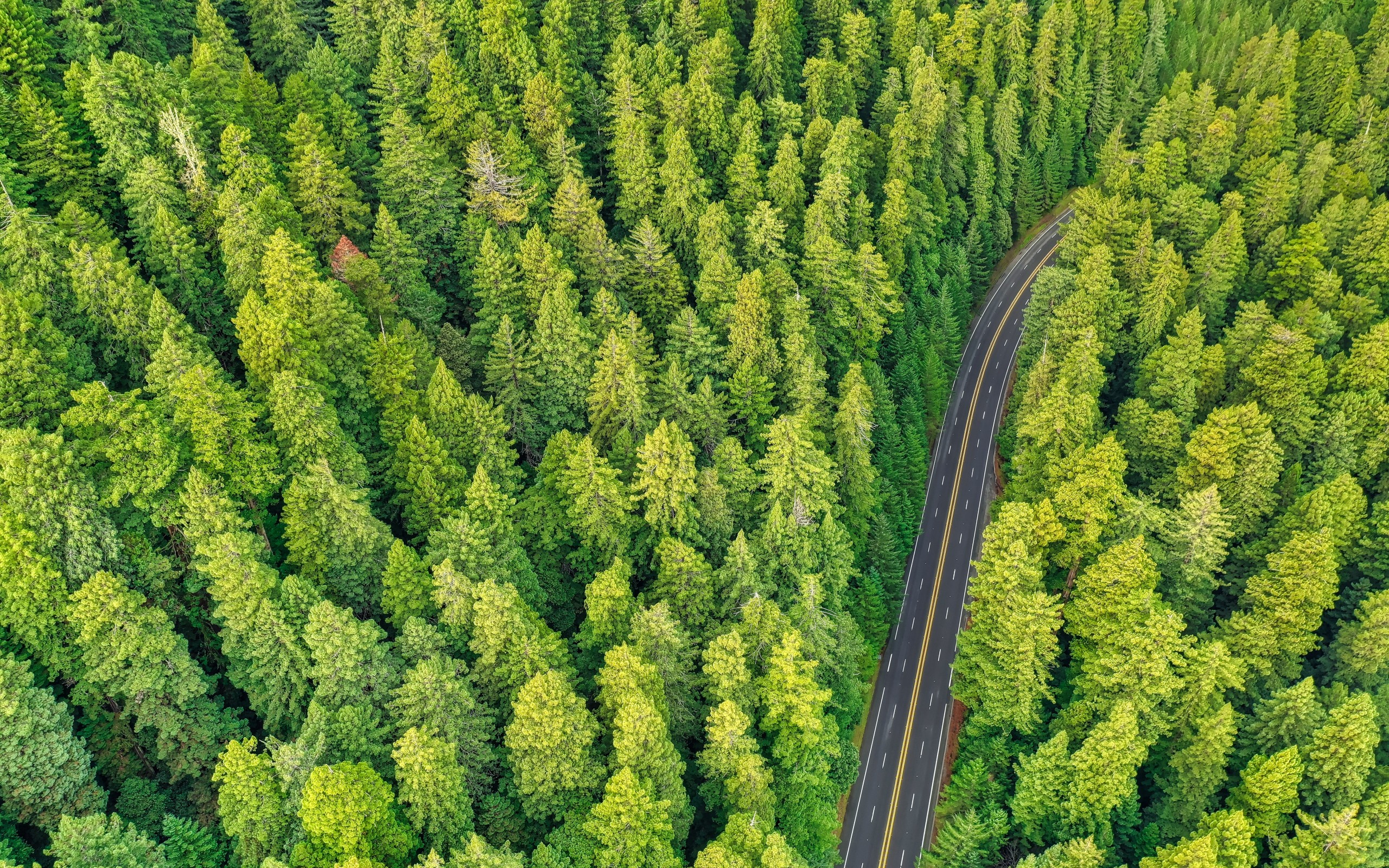 Beautiful Green Fir Forest and Road Aerial View - 2560x1600