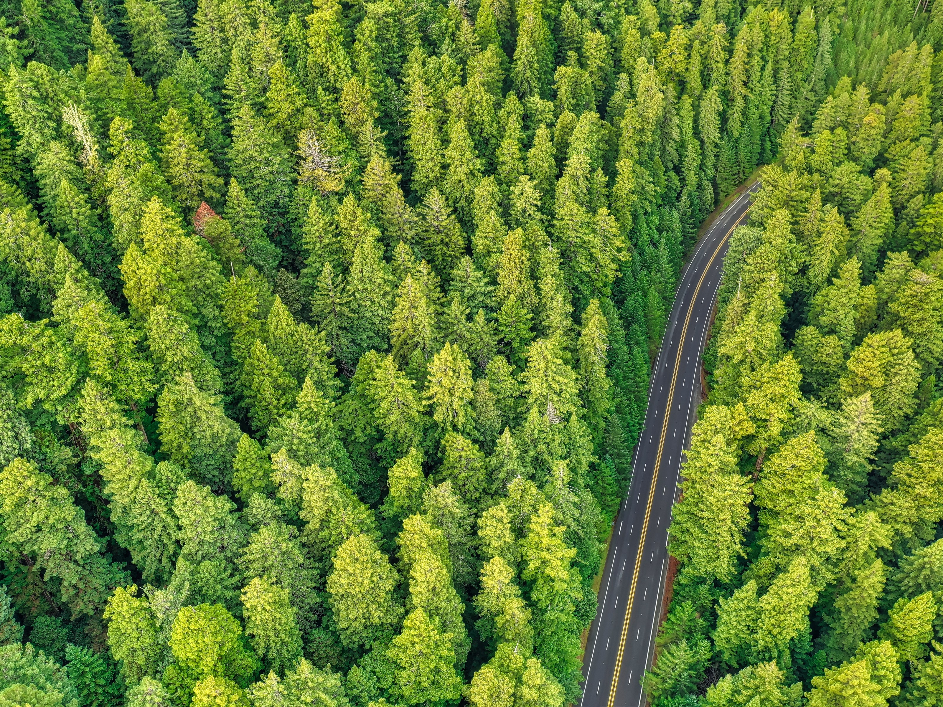 Beautiful Green Fir Forest and Road Aerial View - 3200x2400