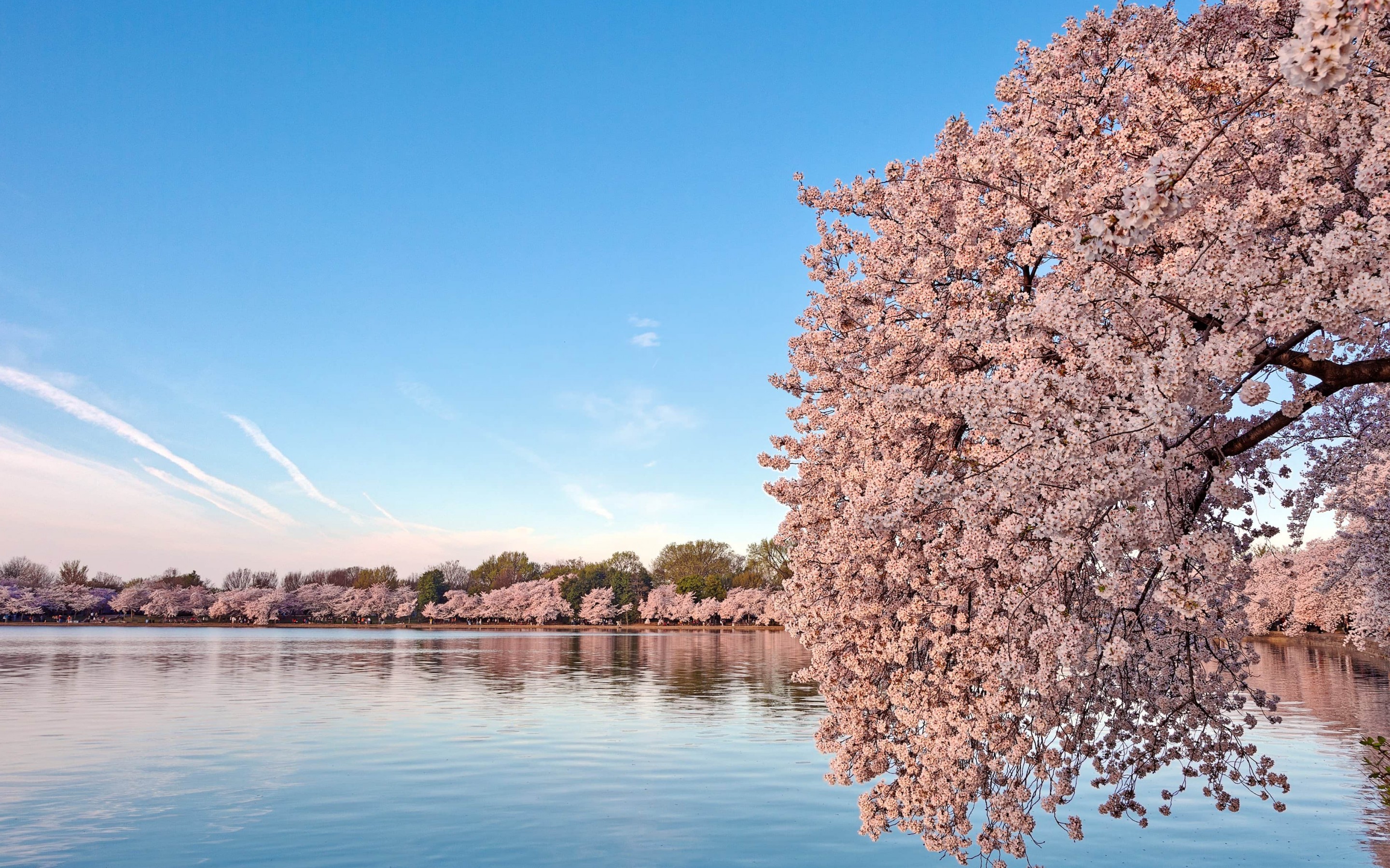 Beautiful Wonderful Cherry Garden on the Lake - 2880x1800