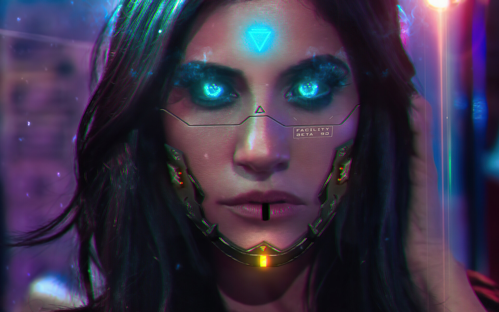 Cyberpunk 2077 Beautiful Cyborg Girl with Blue Eyes - 1920x1200