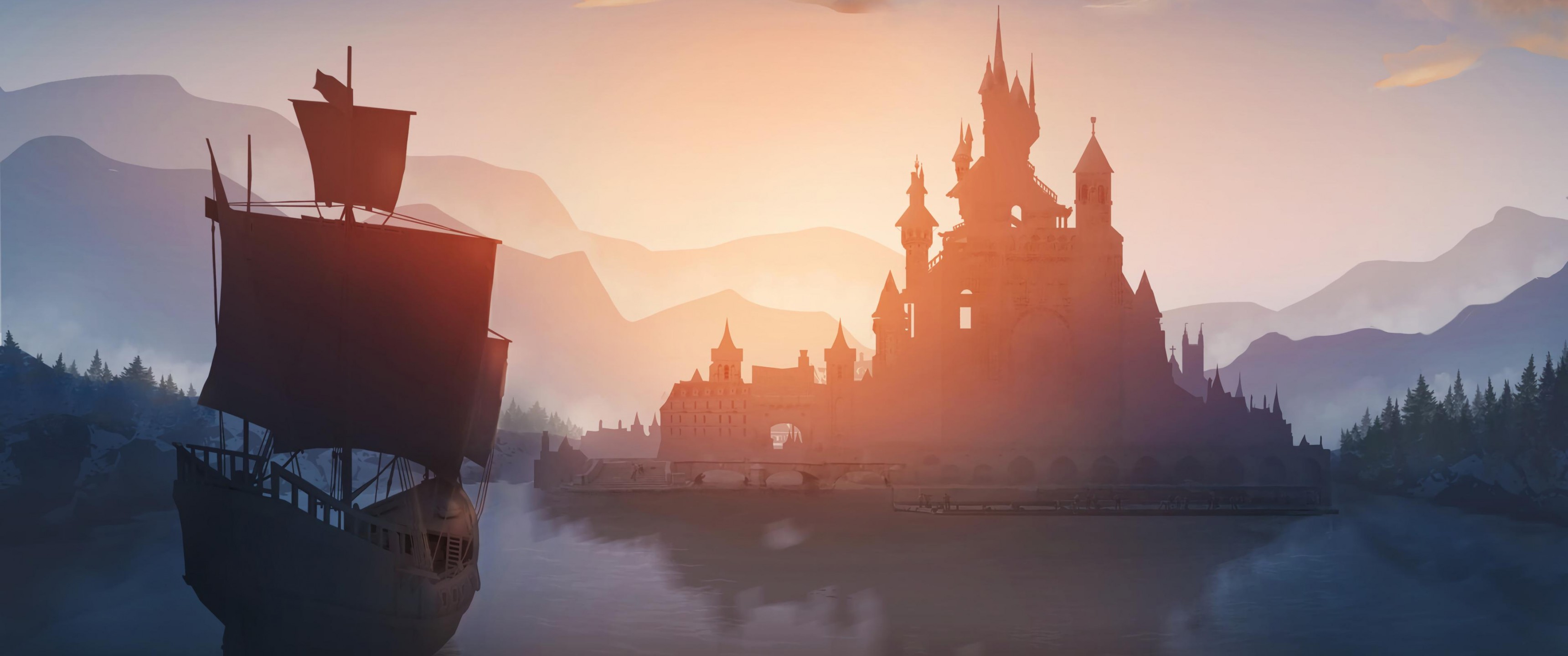 Ship and Castle in Port - 3440x1440 Ultra WQHD