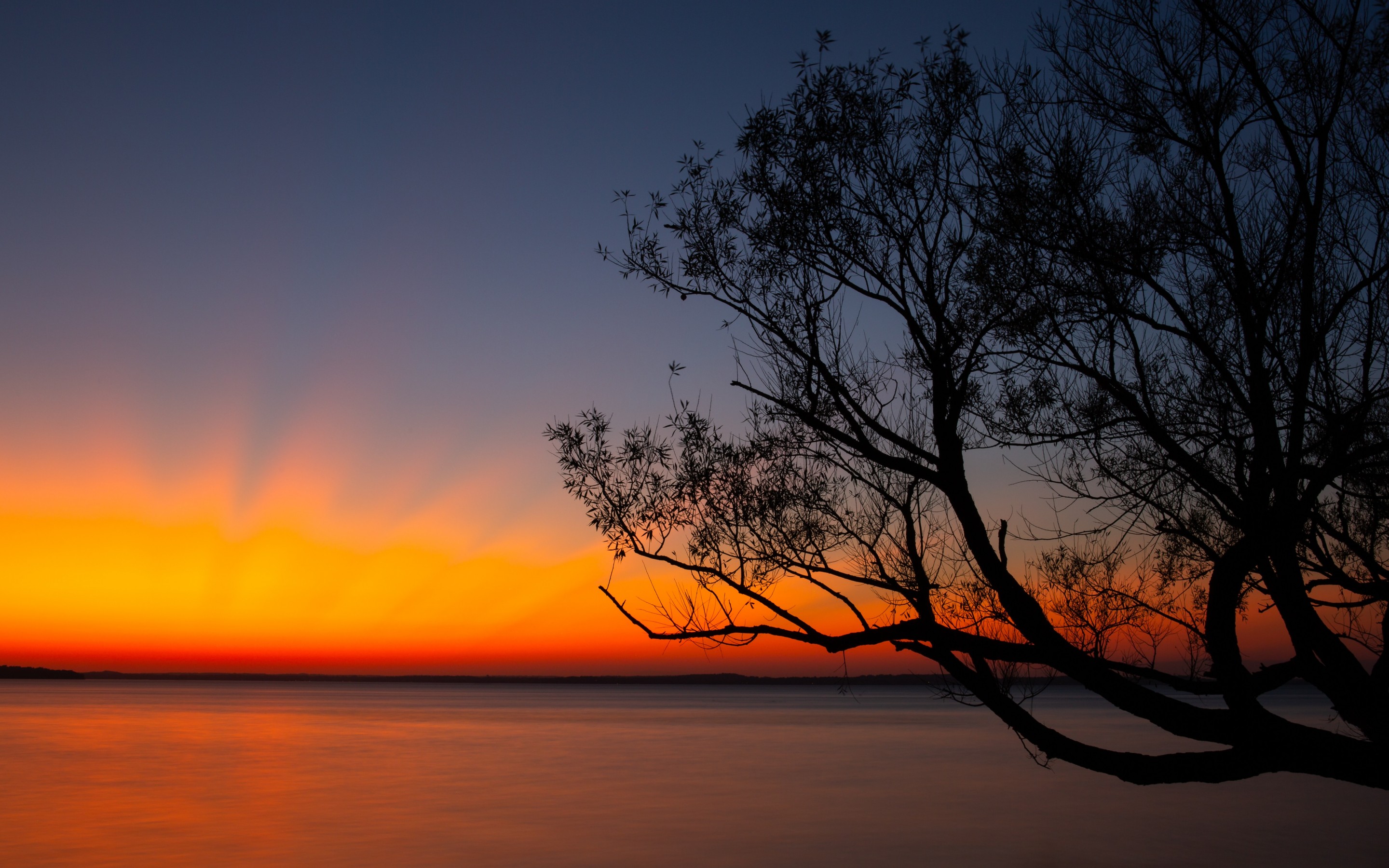 Silhouette of Single Tree and Orange Sunset - 2880x1800