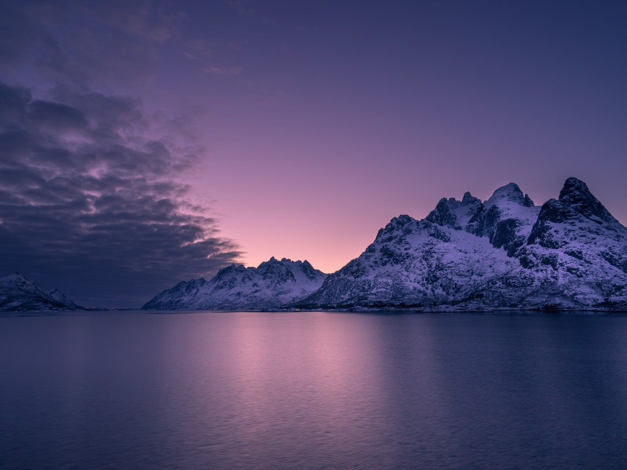 Wonderful Mountains and Lake with Purple Sunset - 1280x960
