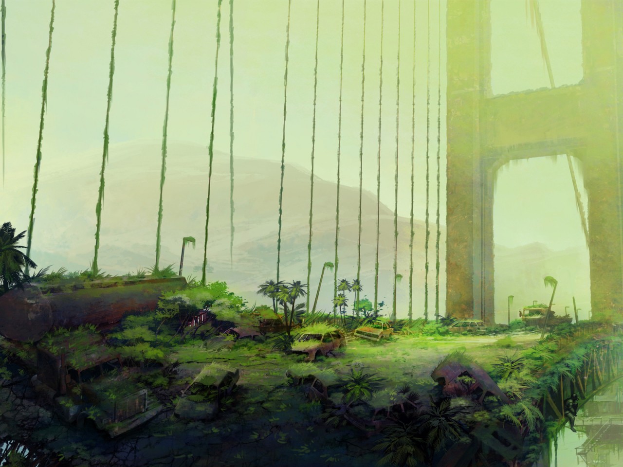 Abandoned The Golden Gate Bridge and Green Grass - 1280x960