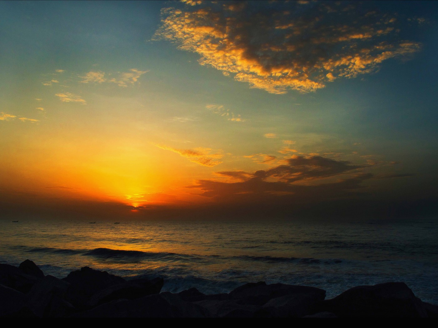 Amazing Beautiful Yellow Sunset and waves on the sea - 1400x1050