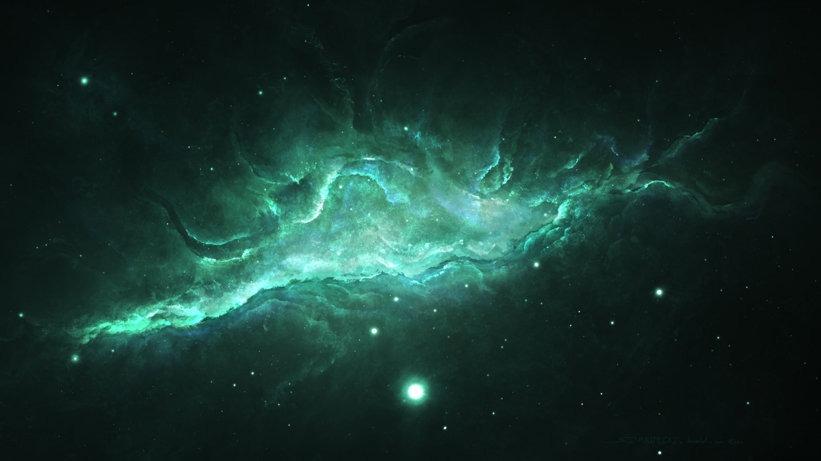 Amazing Green Galaxy and Stars - 1600x900