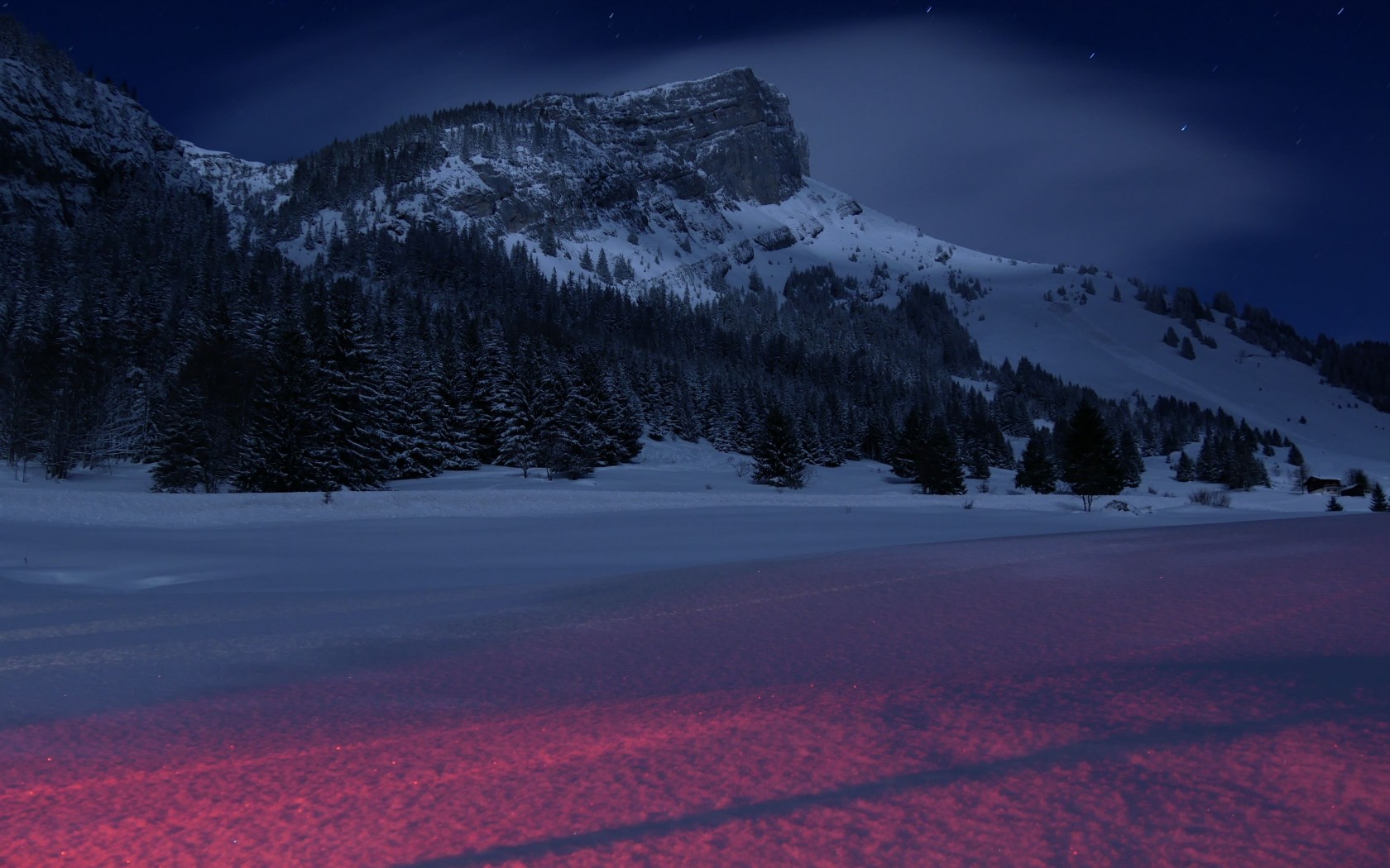 Amazing Snowed Mountains Starry Sky and Last Red Sunlight - 1680x1050