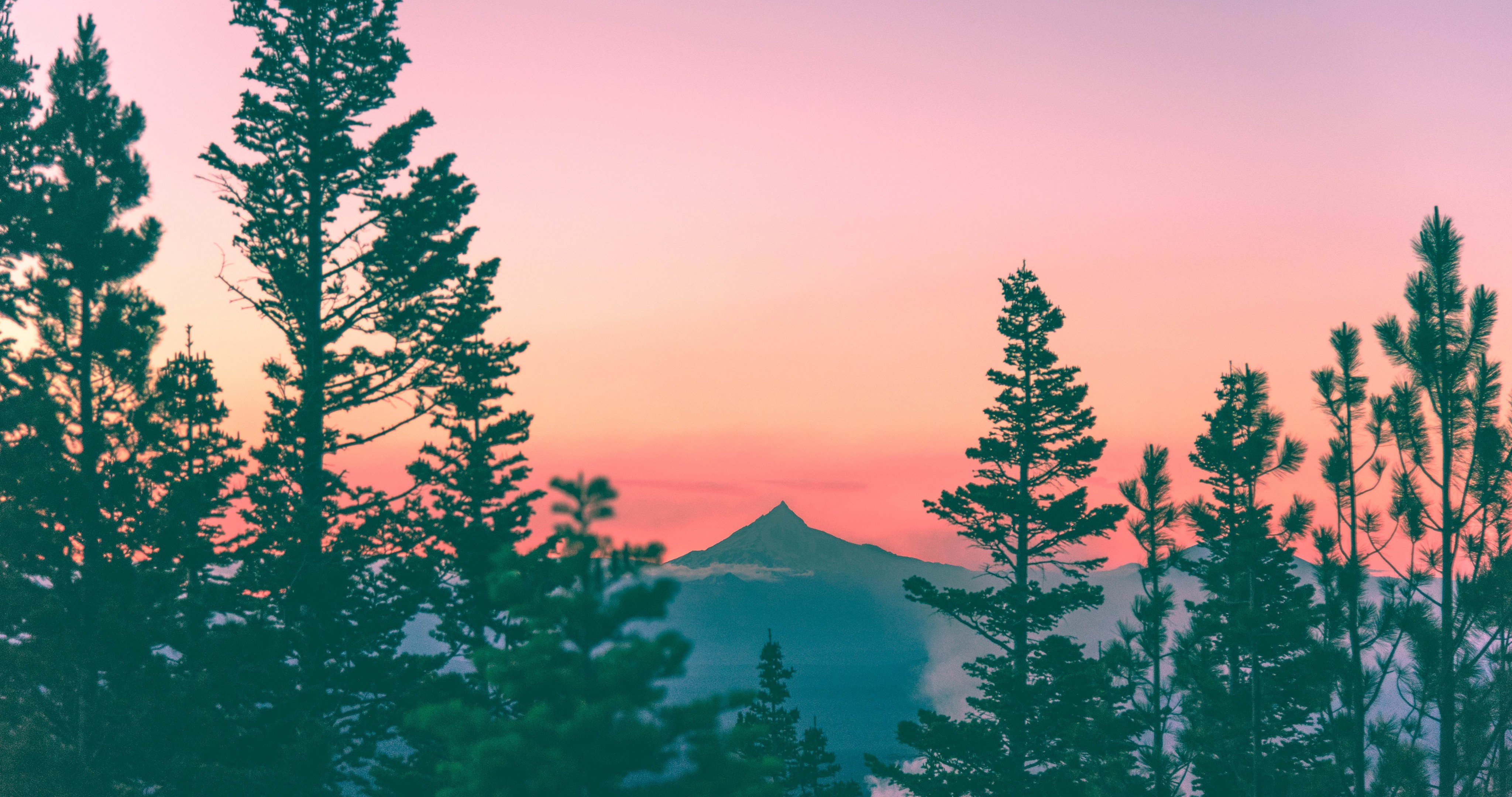 Amazing sunset in pine forest and mountains - 4096x2160 4K
