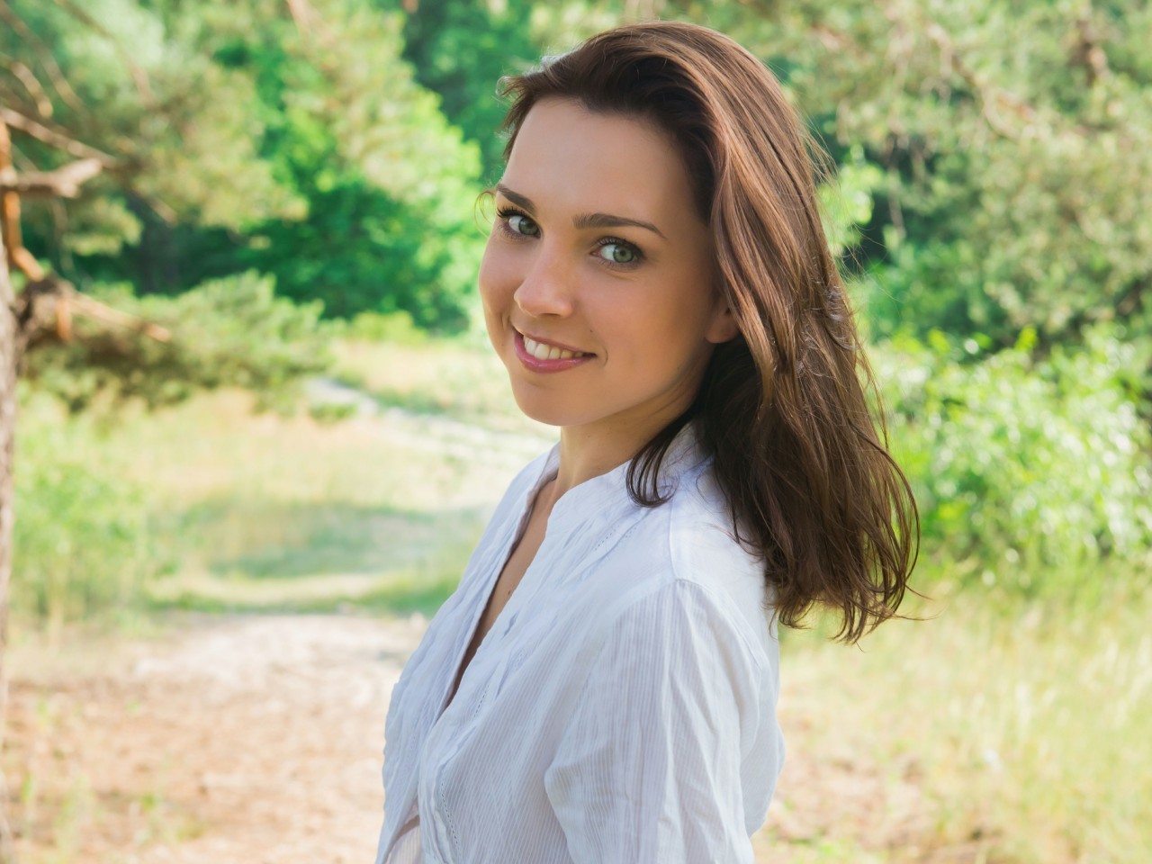 Anita Pretty Young Lady in Green Forest - 1280x960