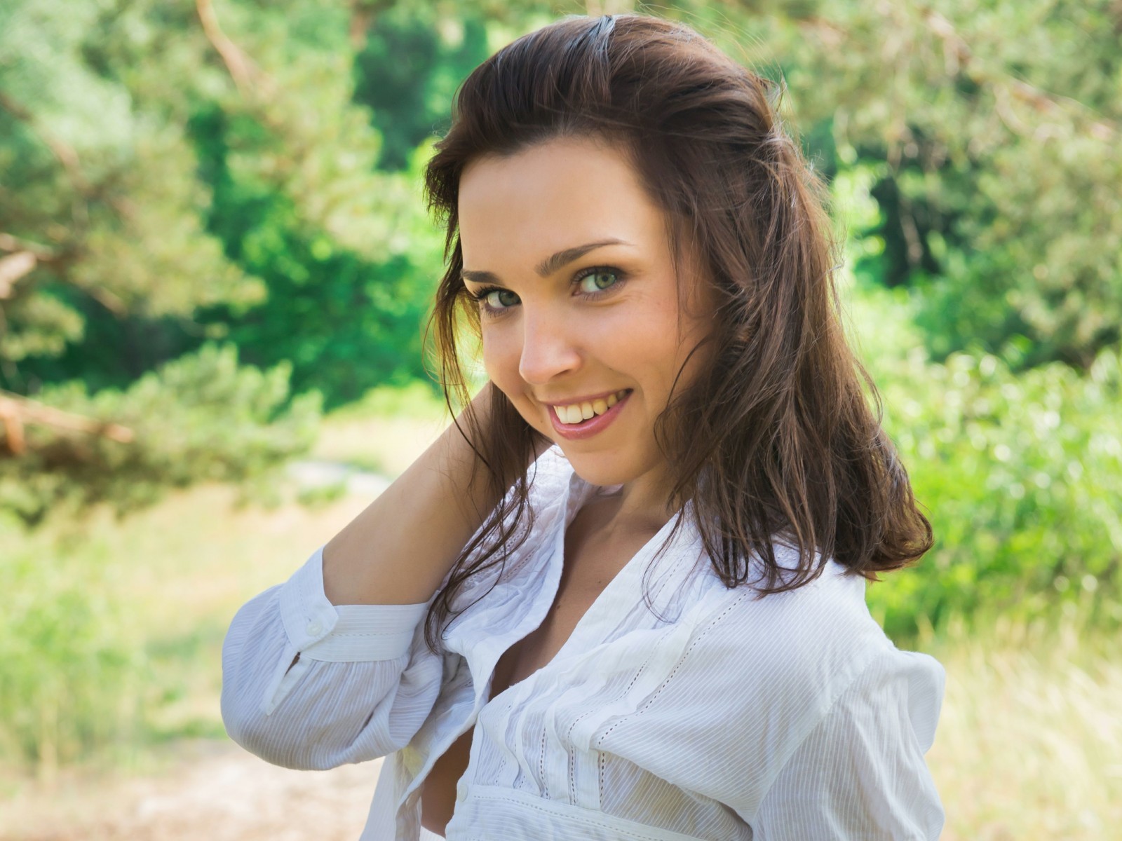 Anita Pretty Young Sexy Lady in Green Forest - 1600x1200