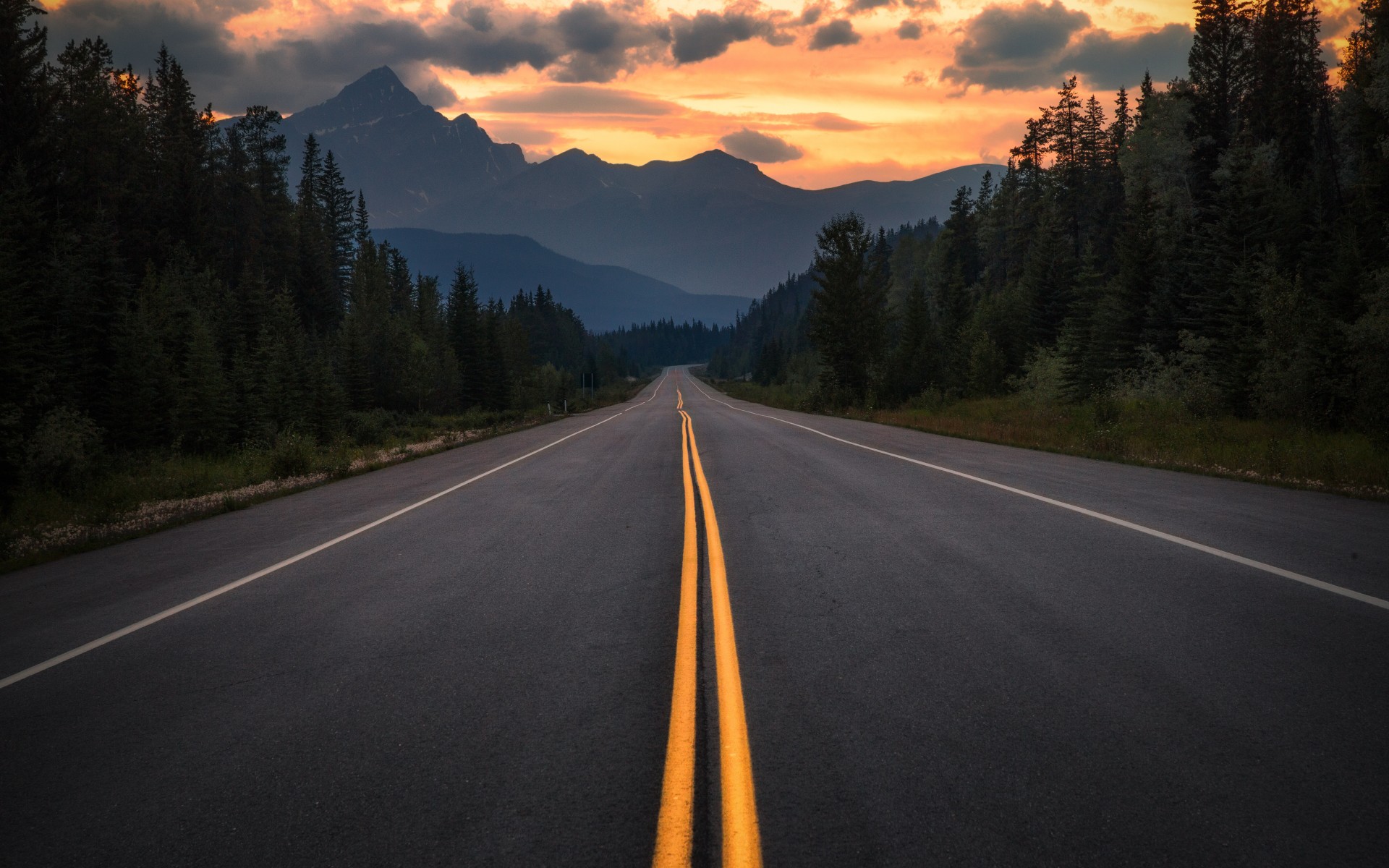 Asphalt on Road in Beautiful Forest - 1920x1200