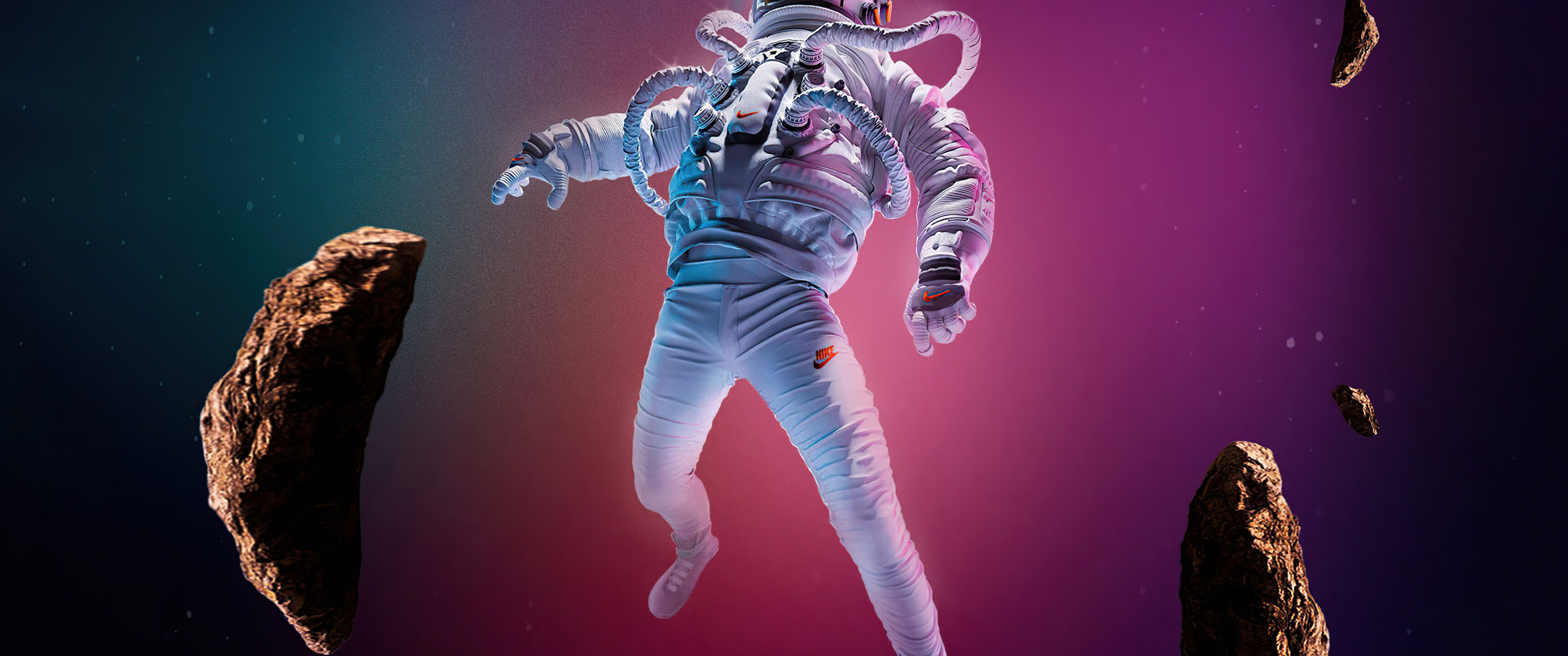 Astronaut in Purple Atmosphere and Stones - 3440x1440 Ultra WQHD