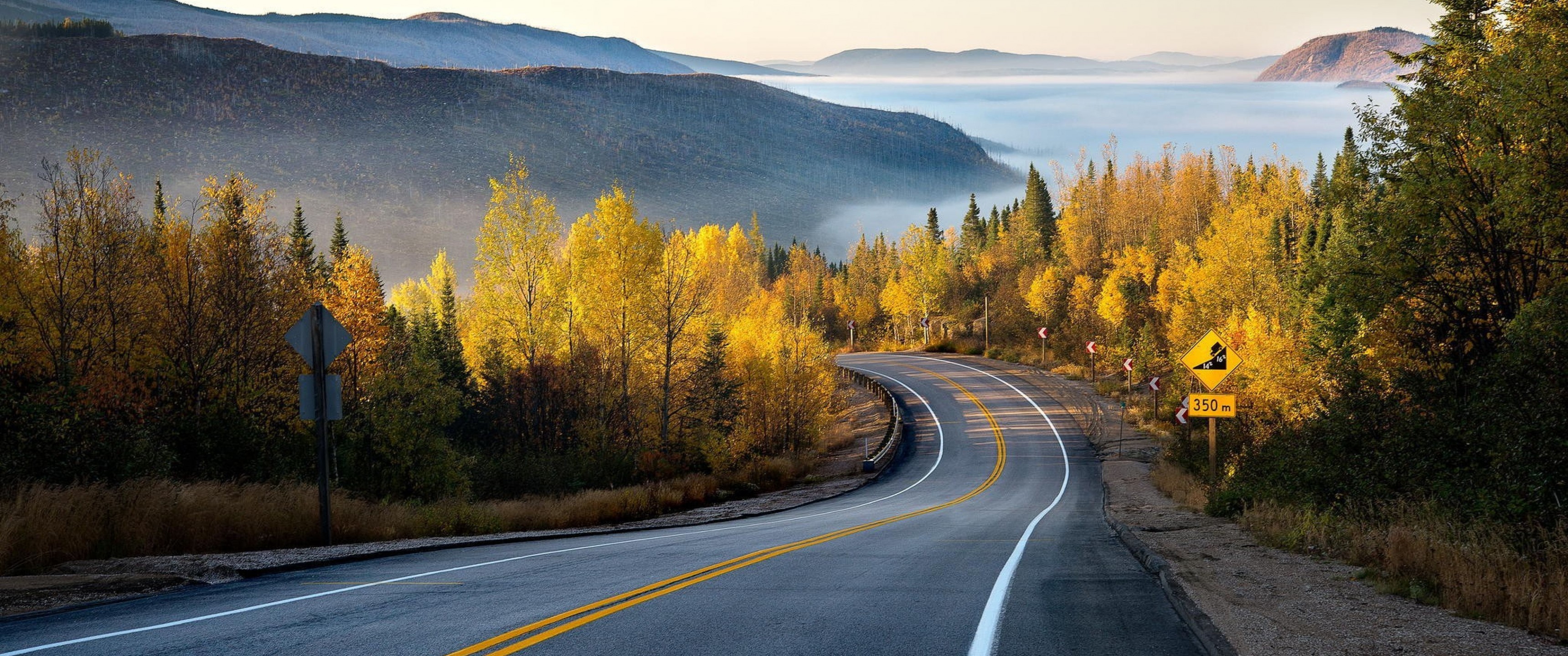 Autumn Forest and Road - 3440x1440 Ultra WQHD