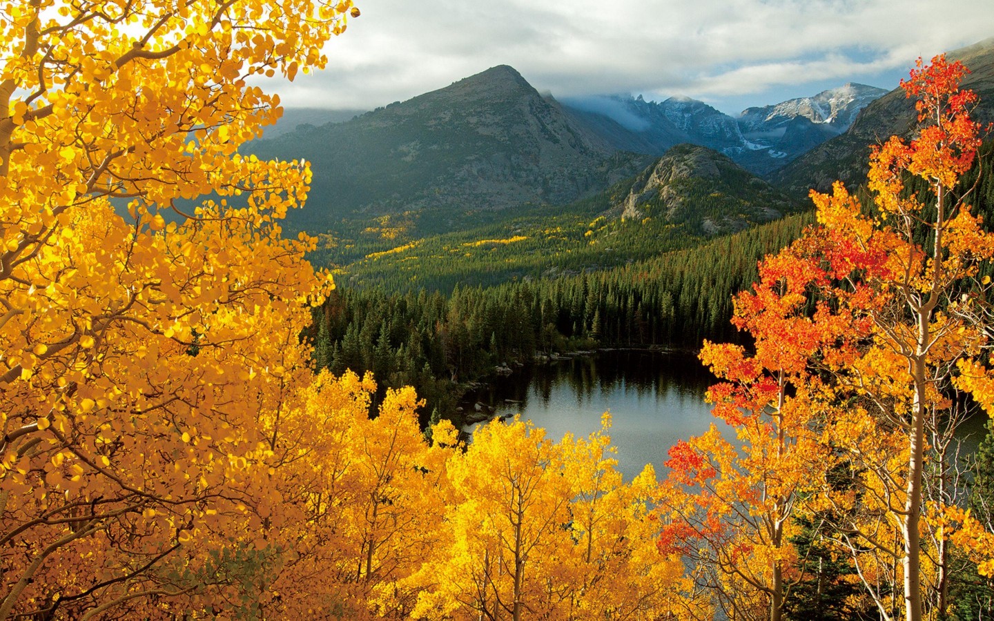 Autumn Trees in Pine Forest - 1440x900