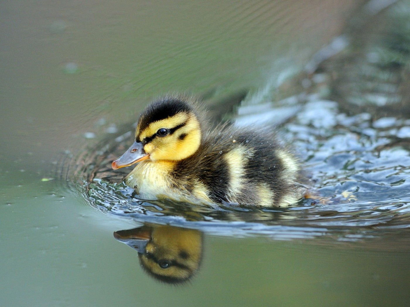Baby Duck on Water and Reflection - 1400x1050