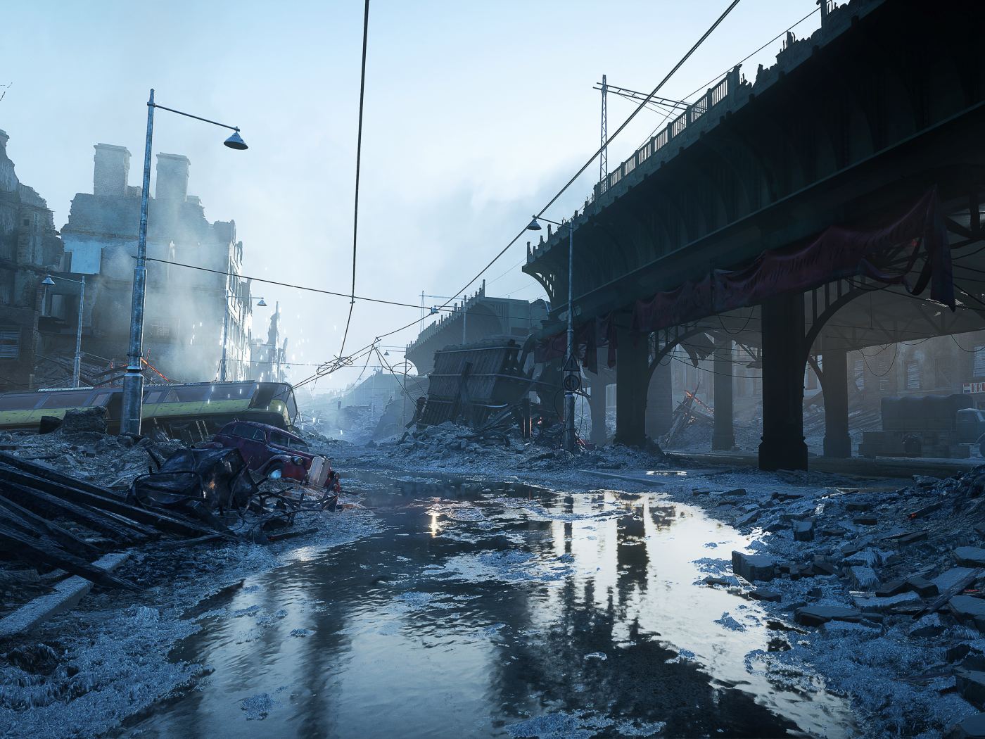 Battlefield 5 Destroyed City and Bridge - 1400x1050
