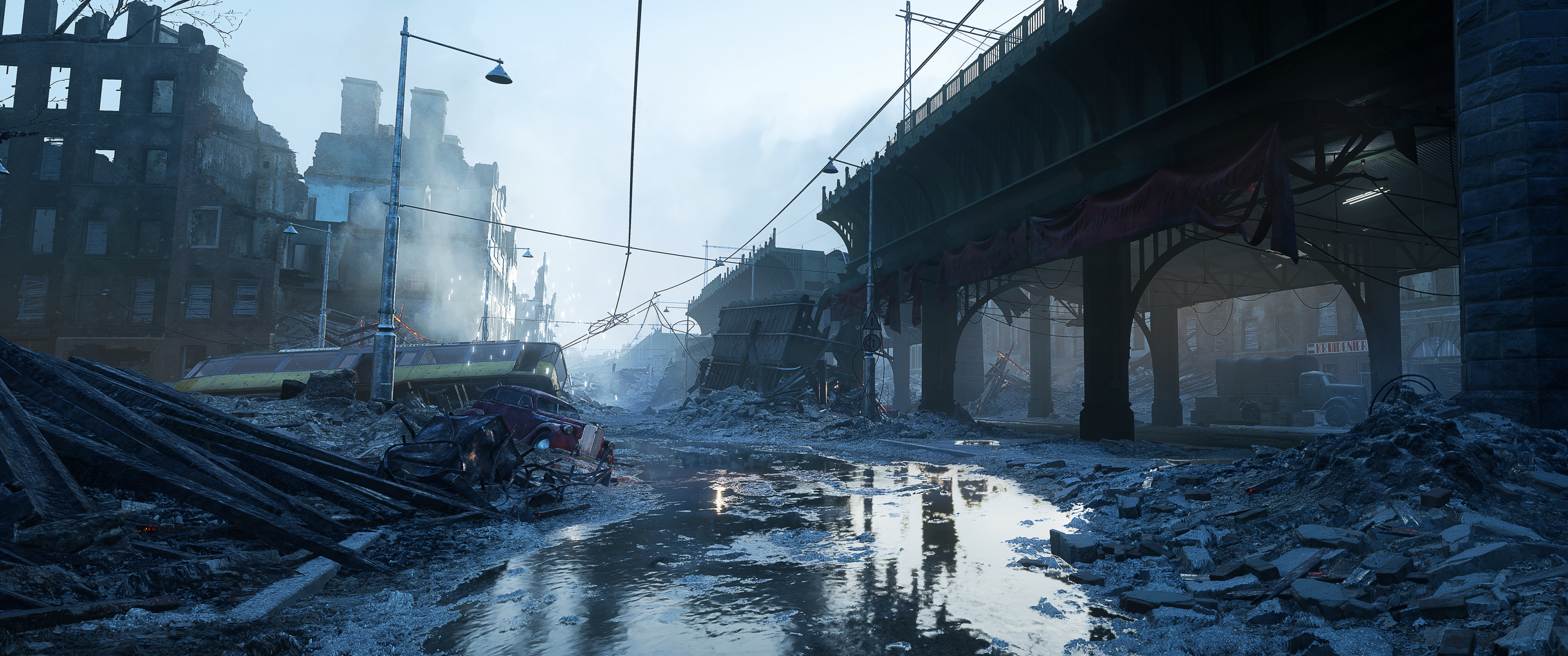 Battlefield 5 Destroyed City and Bridge - 3440x1440 Ultra WQHD