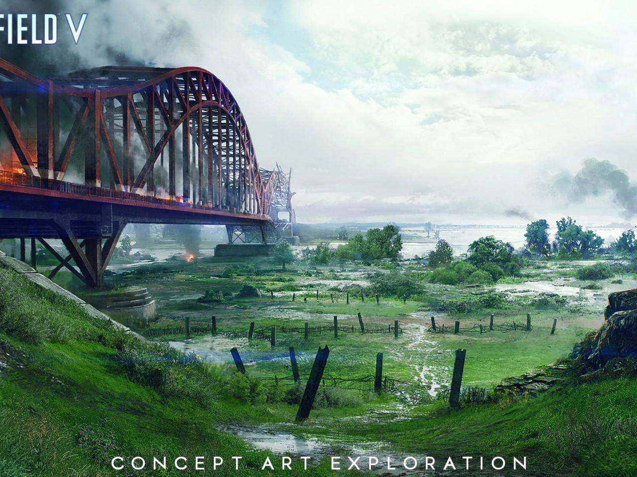 Battlefield 5 Old Red Bridge and Swamp with Green Grass - 1280x960
