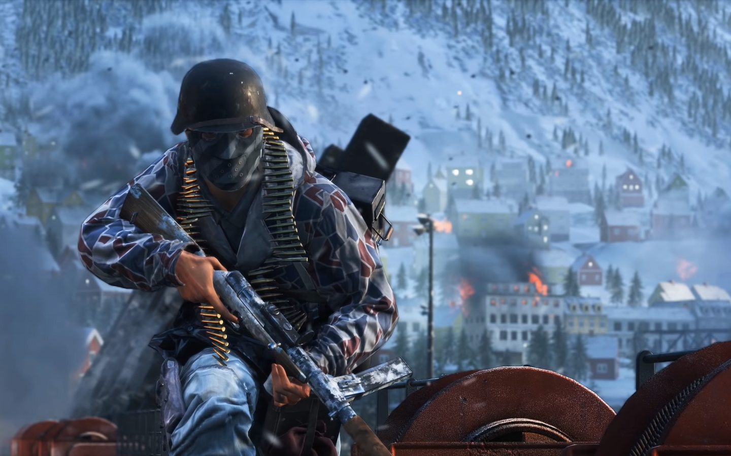 Battlefield 5 Soldier in Mask and Village in Mountain Valley - 1440x900