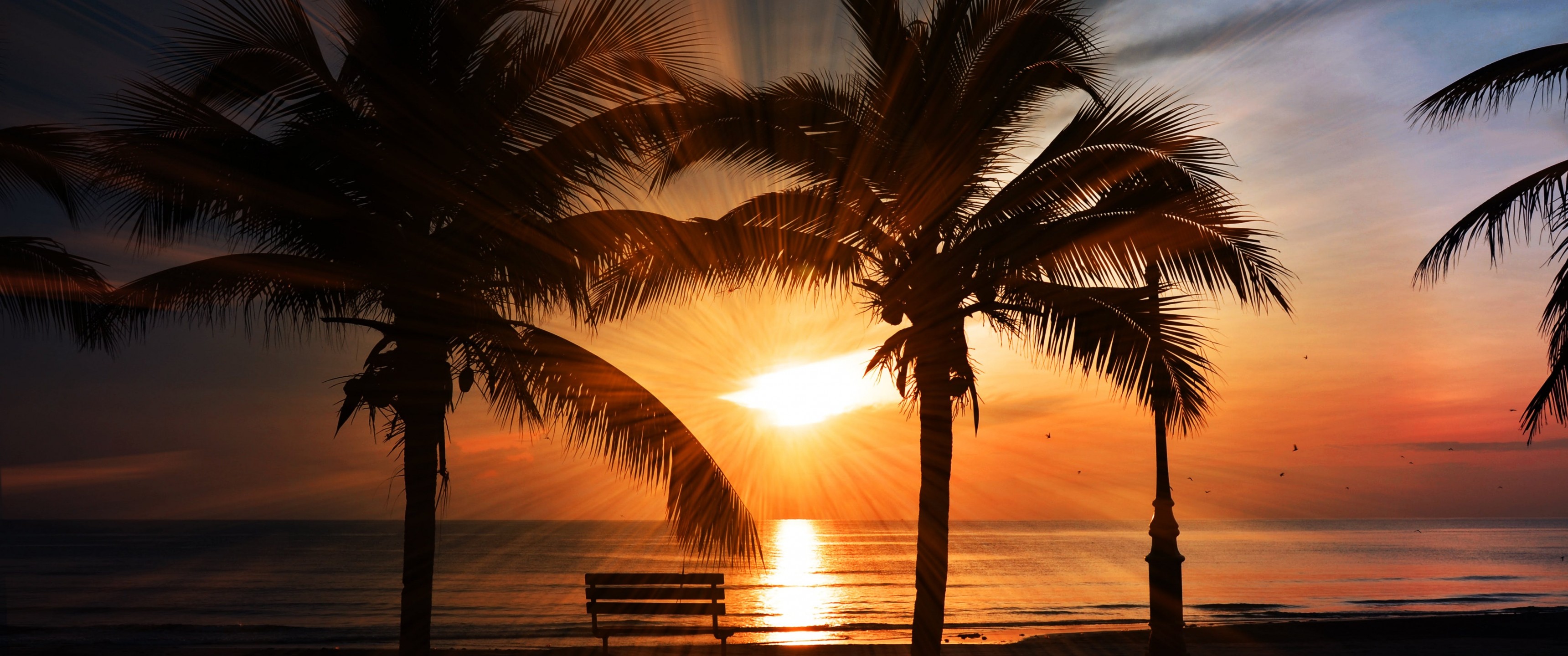 Beach Sunset Benches of Palms - 3440x1440 Ultra WQHD