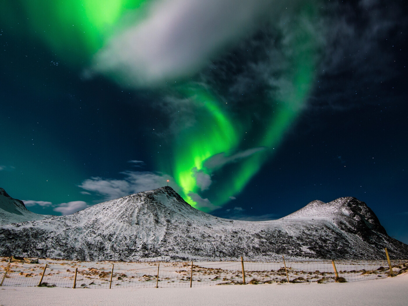 Beautiful Amazing Green Aurora and Mountains - 1400x1050