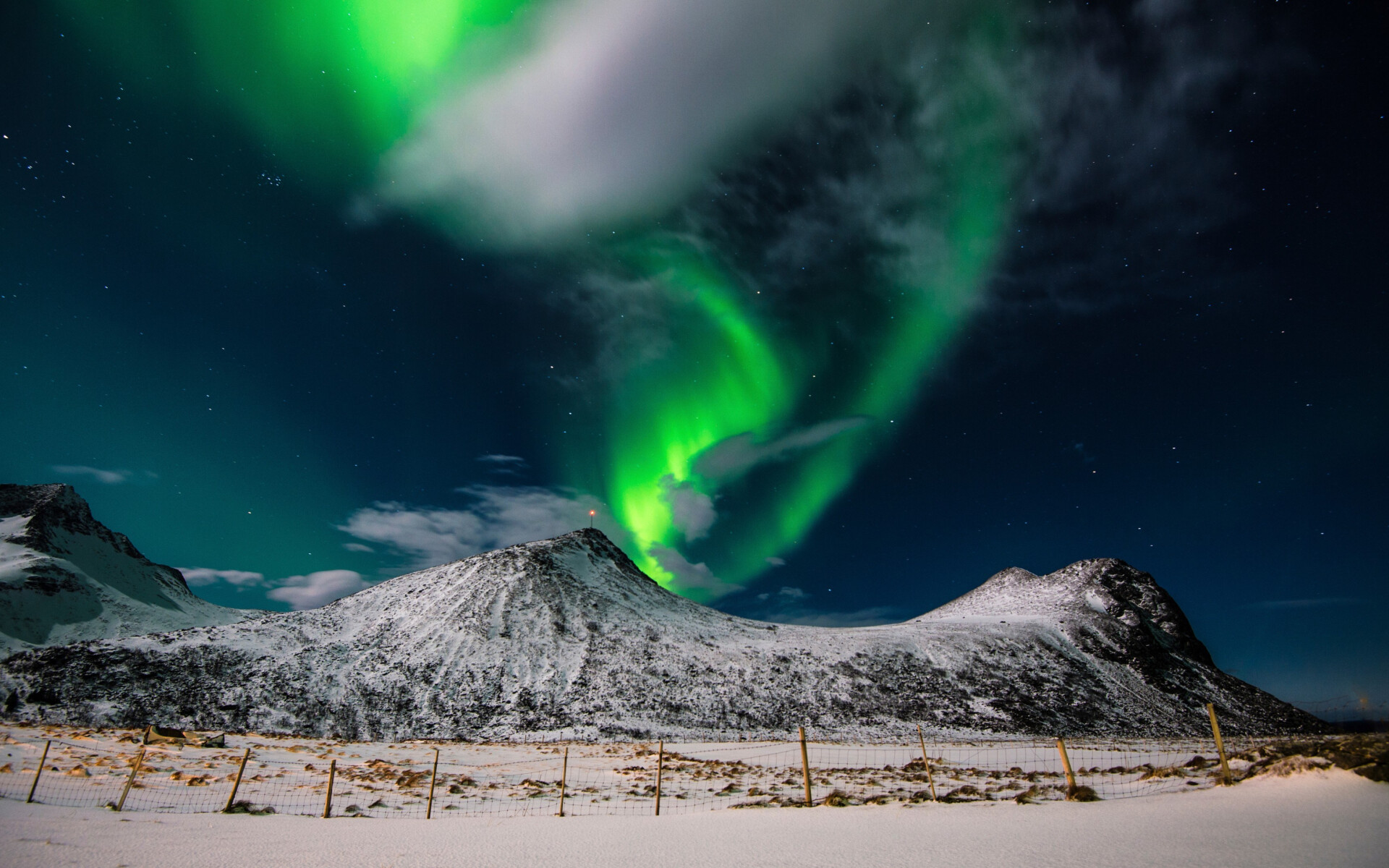 Beautiful Amazing Green Aurora and Mountains - 1920x1200