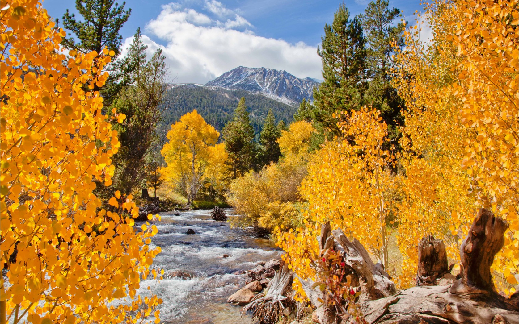 Beautiful Autumn Forest and River in Valley - 1680x1050