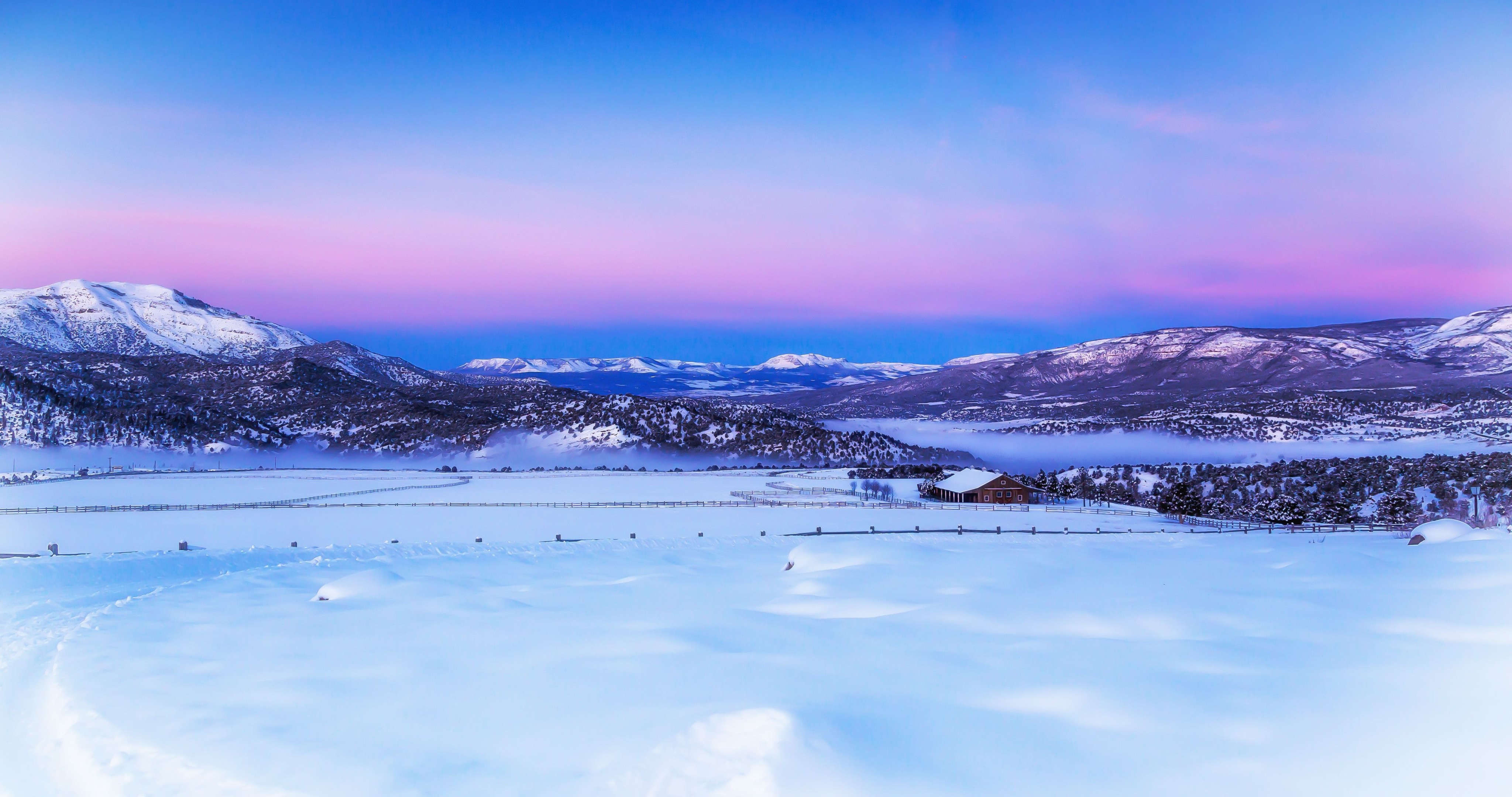 Beautiful Big Field Single House and Amazing Snowed Valley - 4096x2160 4K