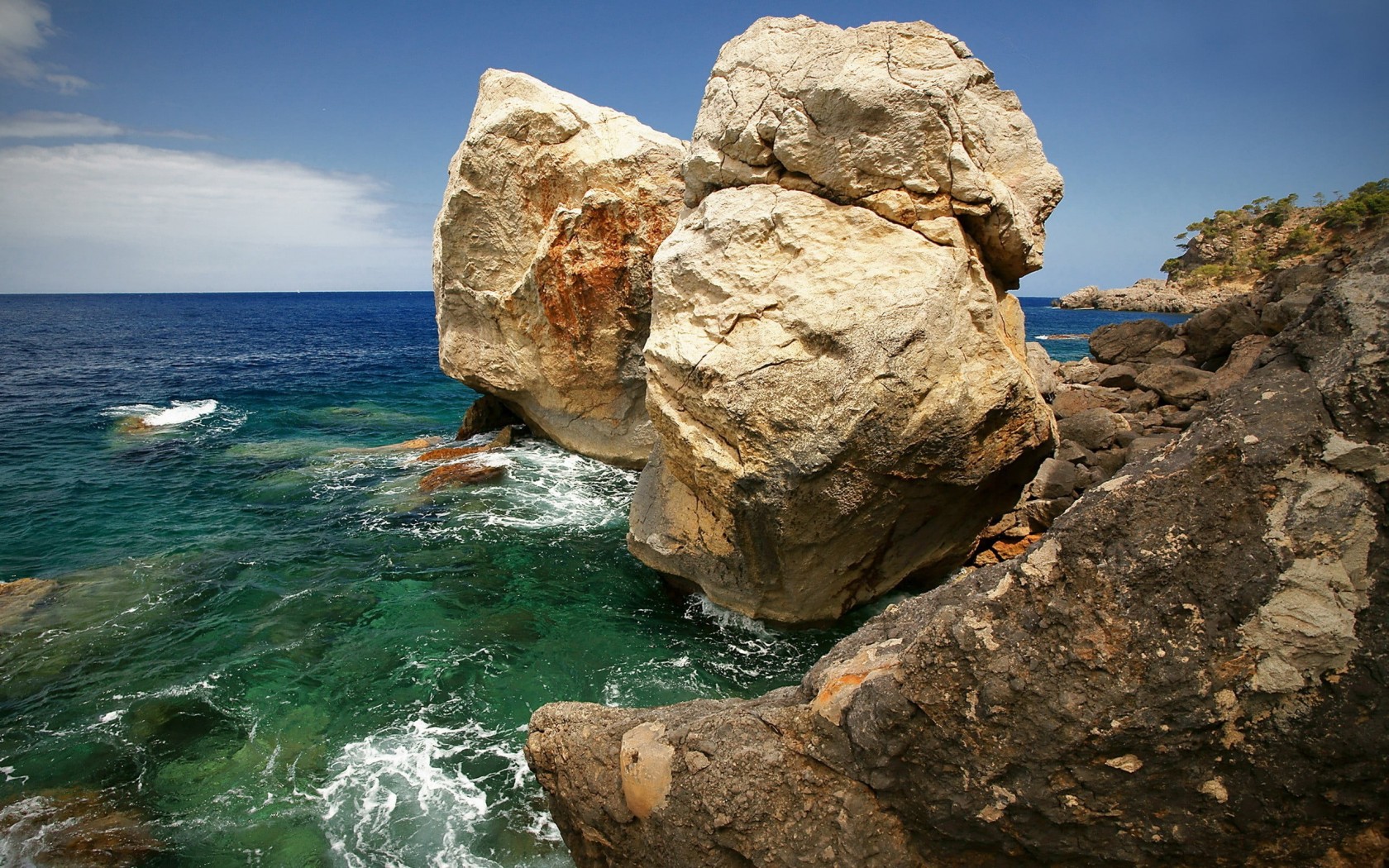 Beautiful Big Rocks and Sea Waves - 1680x1050
