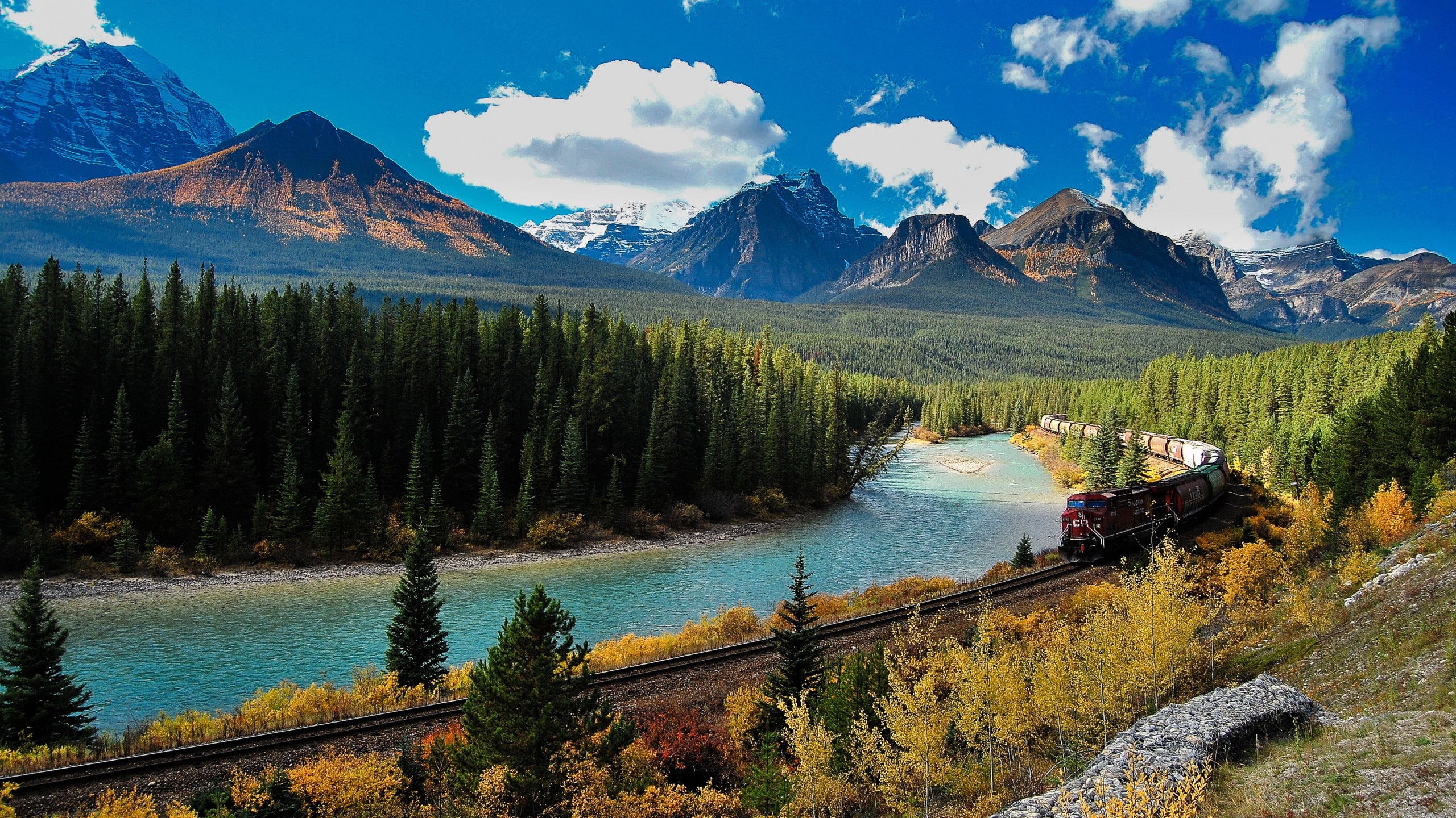 Beautiful Blue River in Pine Forest - 2560x1440