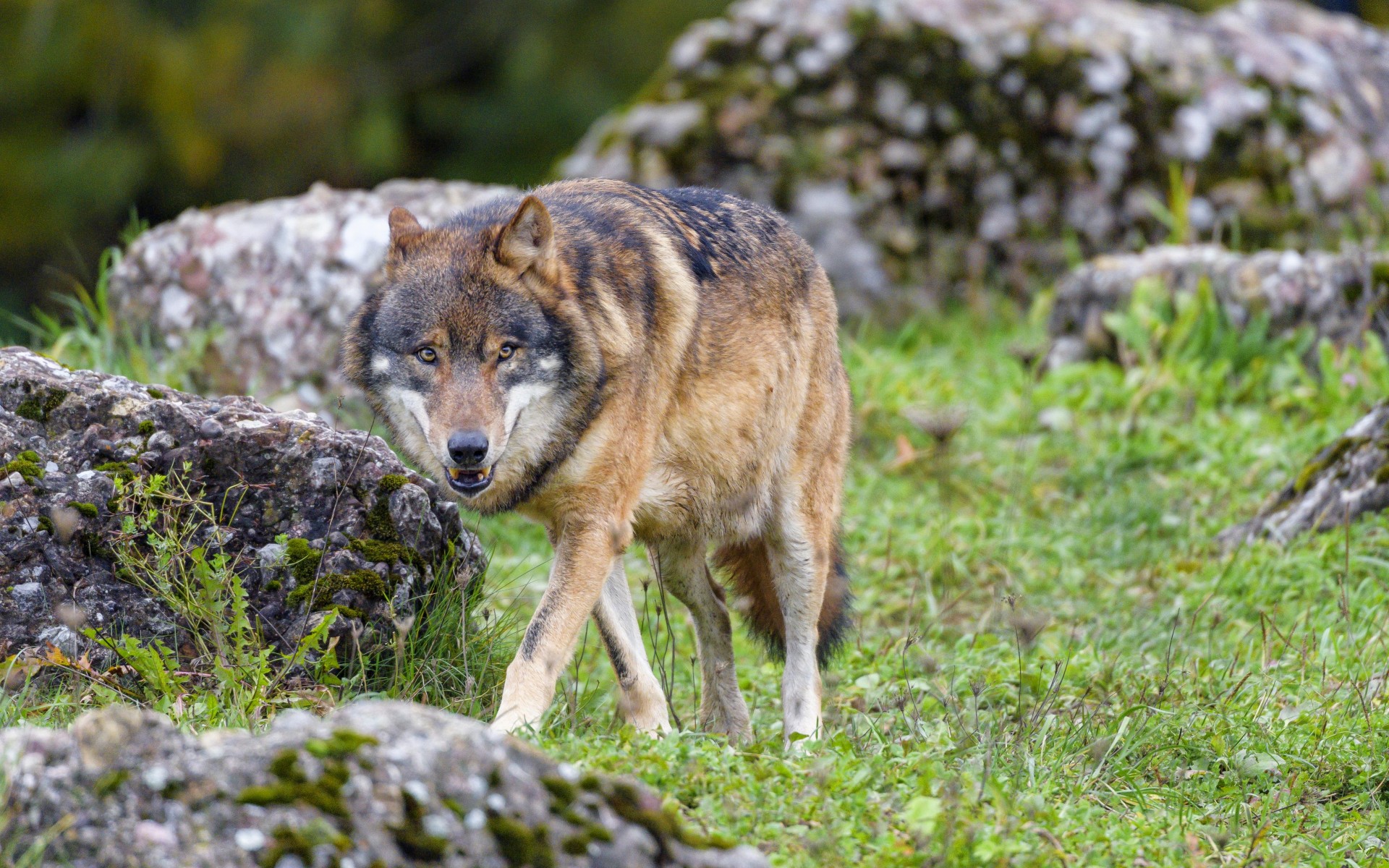Beautiful Brown Wolf and Rocks - 1920x1200