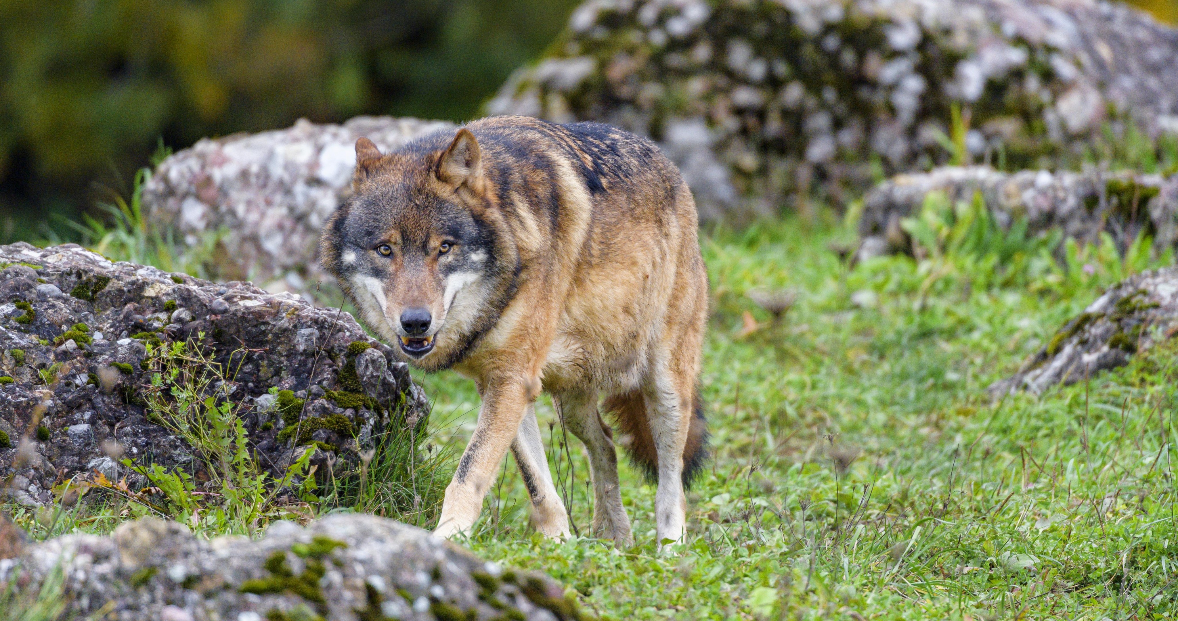 Beautiful Brown Wolf and Rocks - 4096x2160 4K