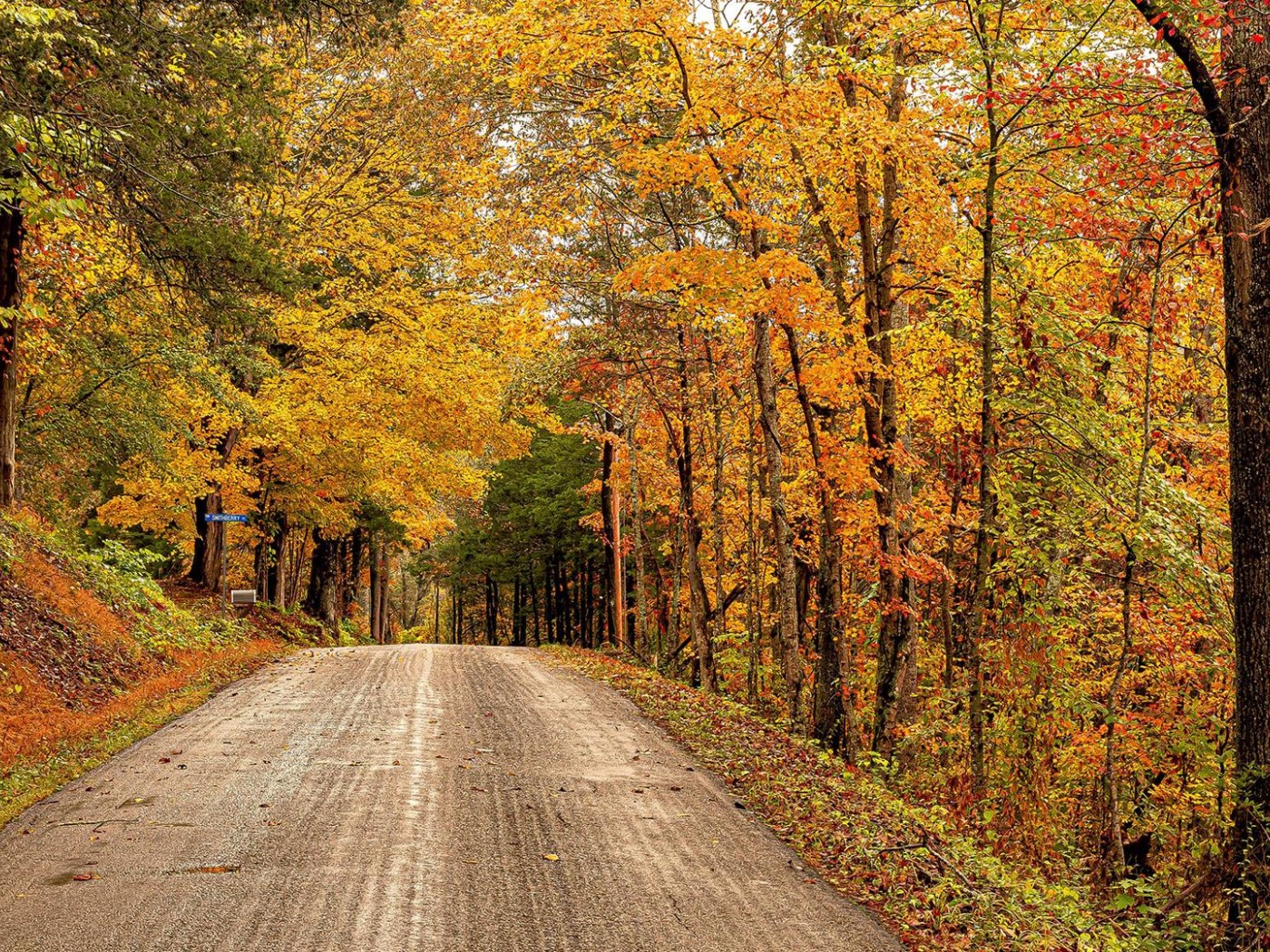 Beautiful Concrete Road in Autumn Forest - 1400x1050
