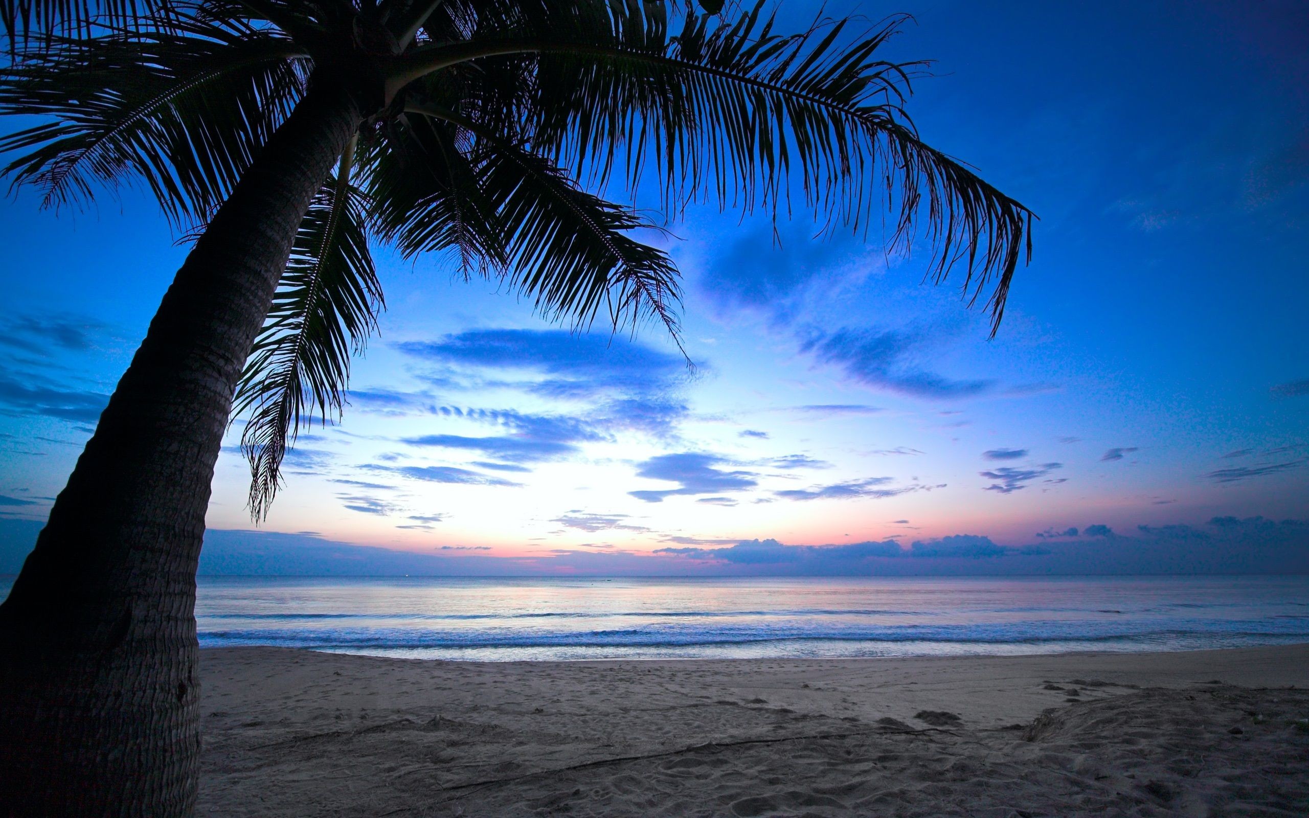 Beautiful Dawn and Single Palm on the Beach - 2560x1600