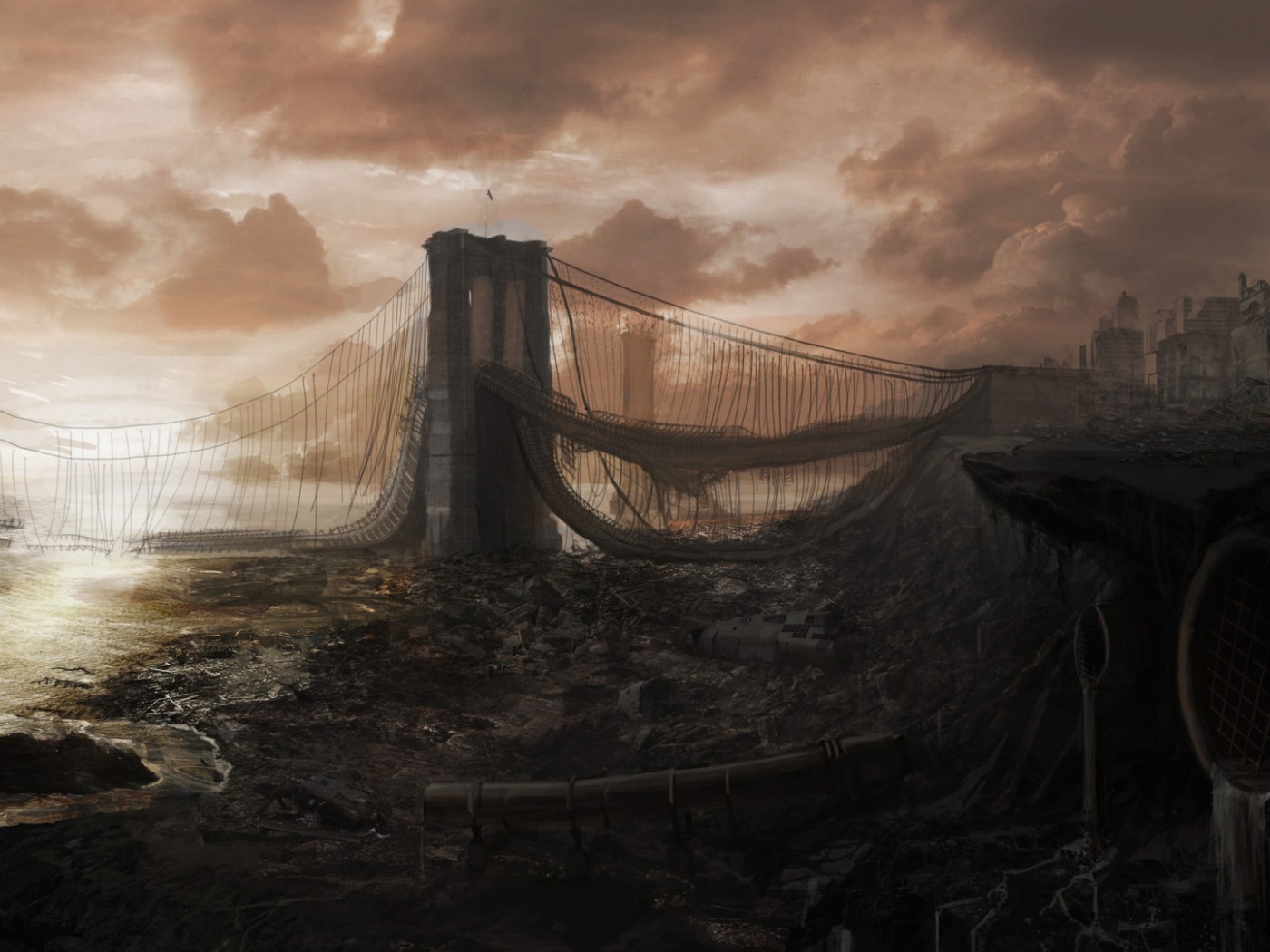 Beautiful Destroyed City and Bridge - 1400x1050