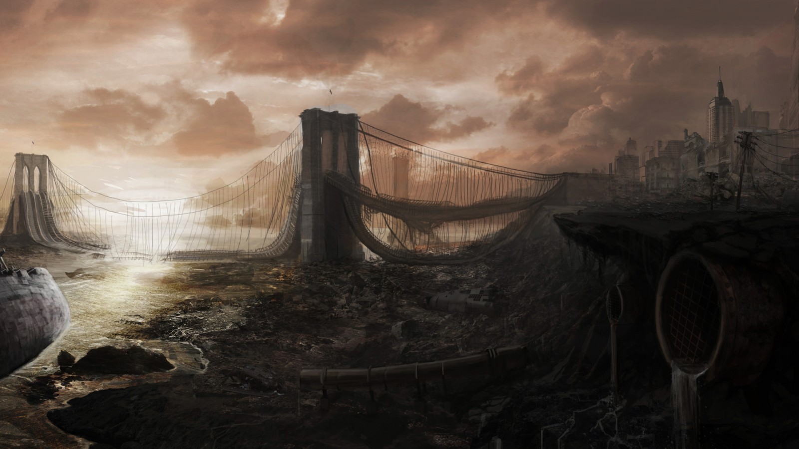 Beautiful Destroyed City and Bridge - 1600x900