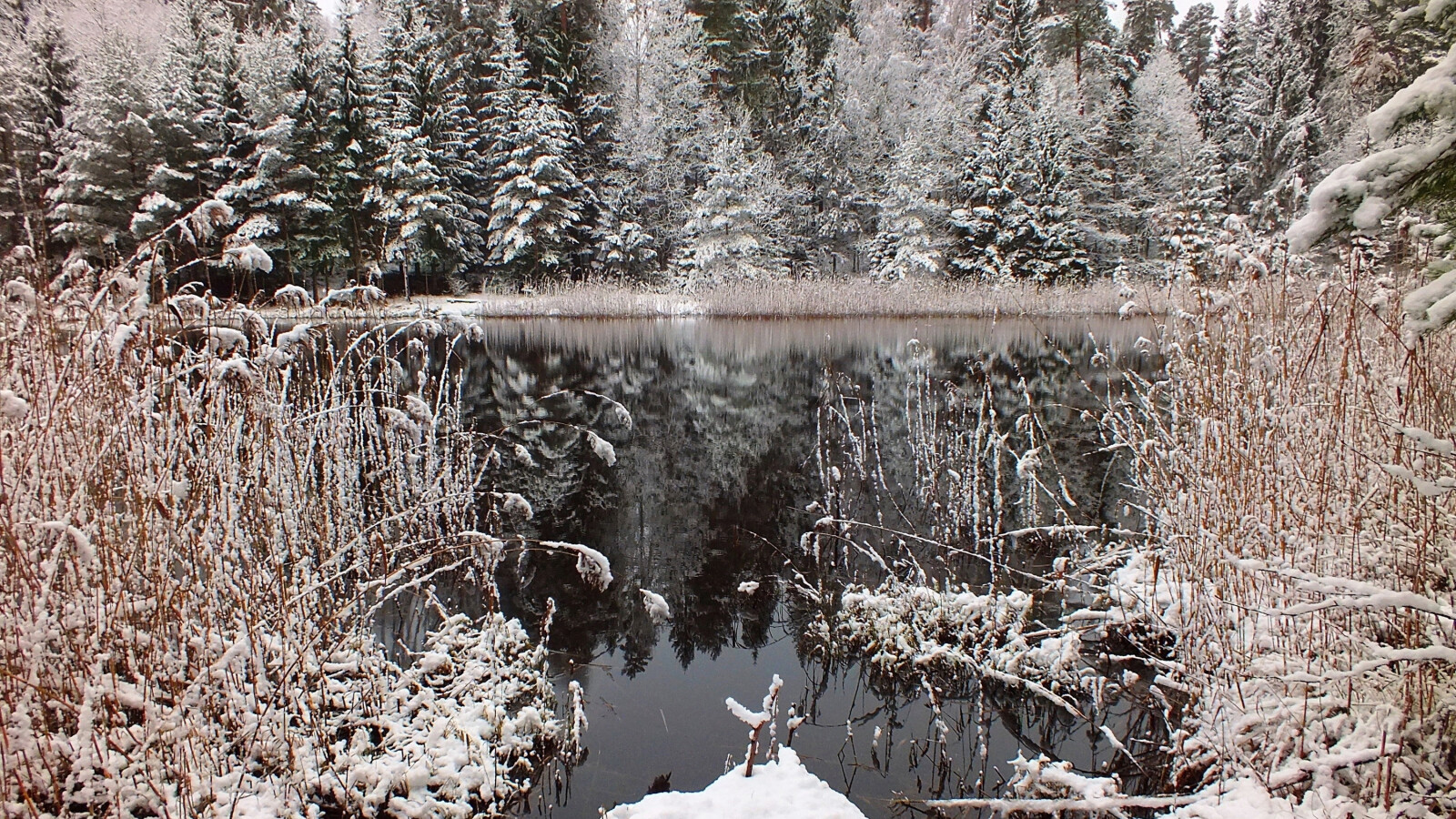 Beautiful Frozen Trees and Frozen Lake - 1600x900
