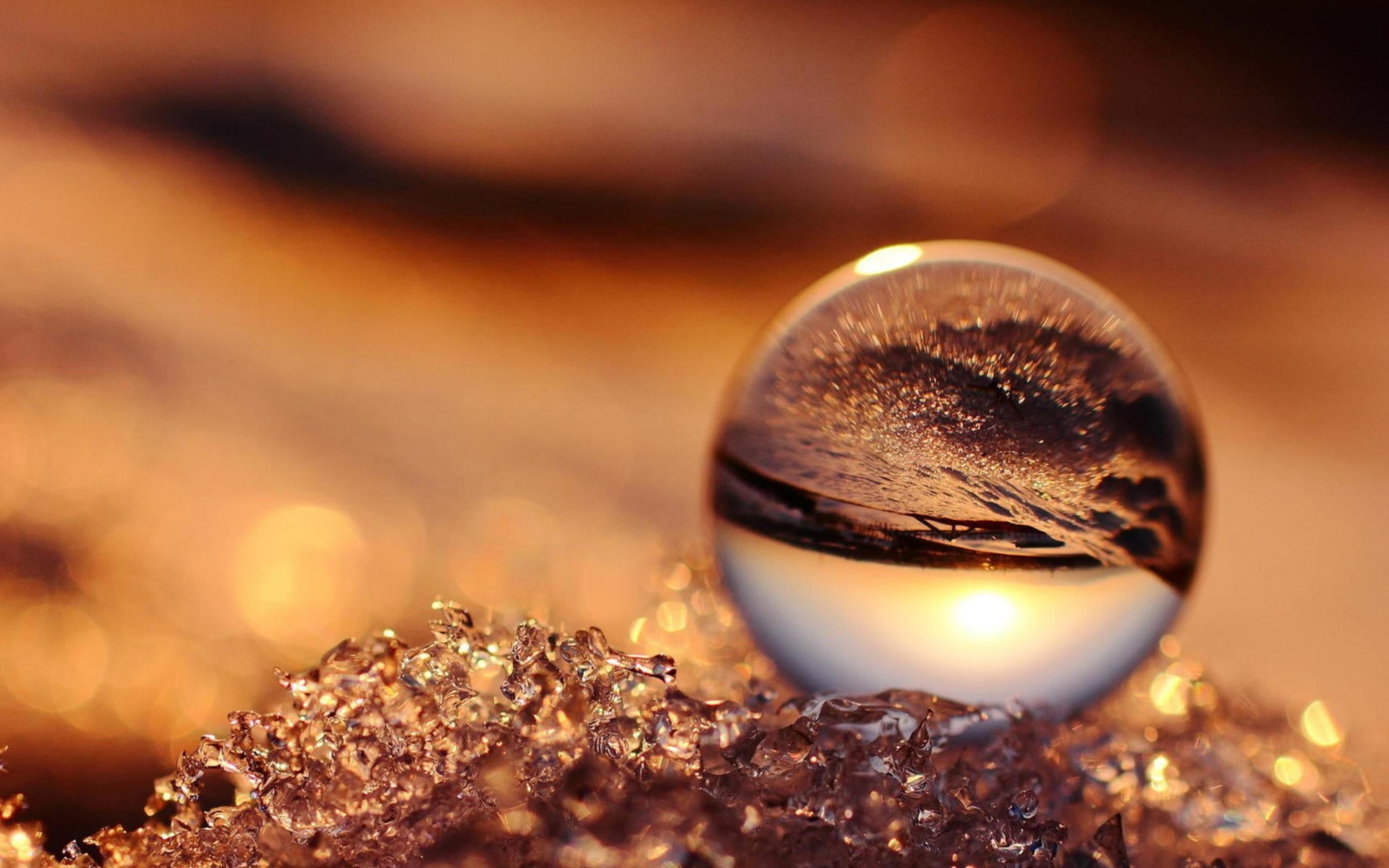 Beautiful Glass Sphere on Brown Surface - 1920x1200