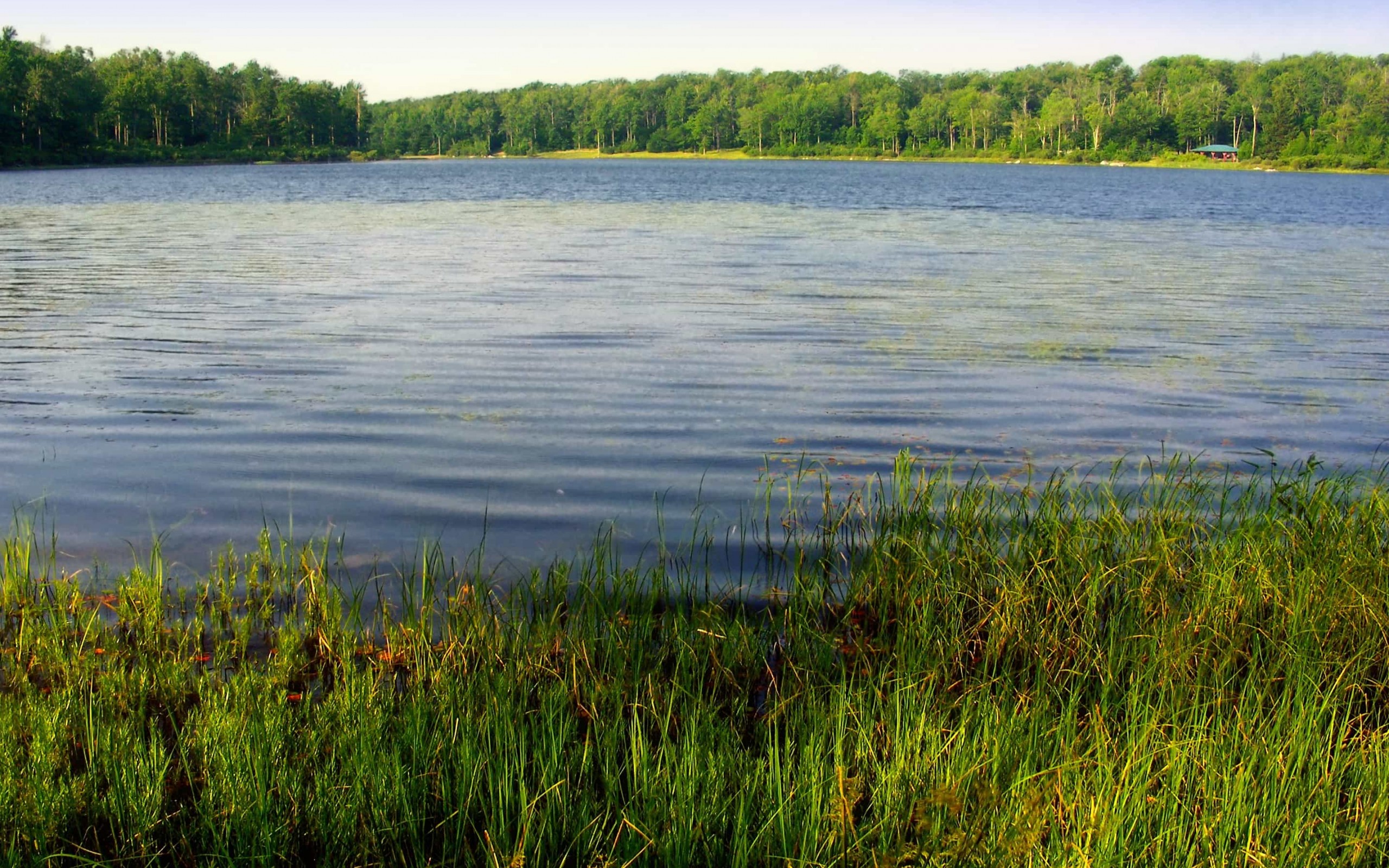 Beautiful Green Grass and Forest with Lake - 2560x1600