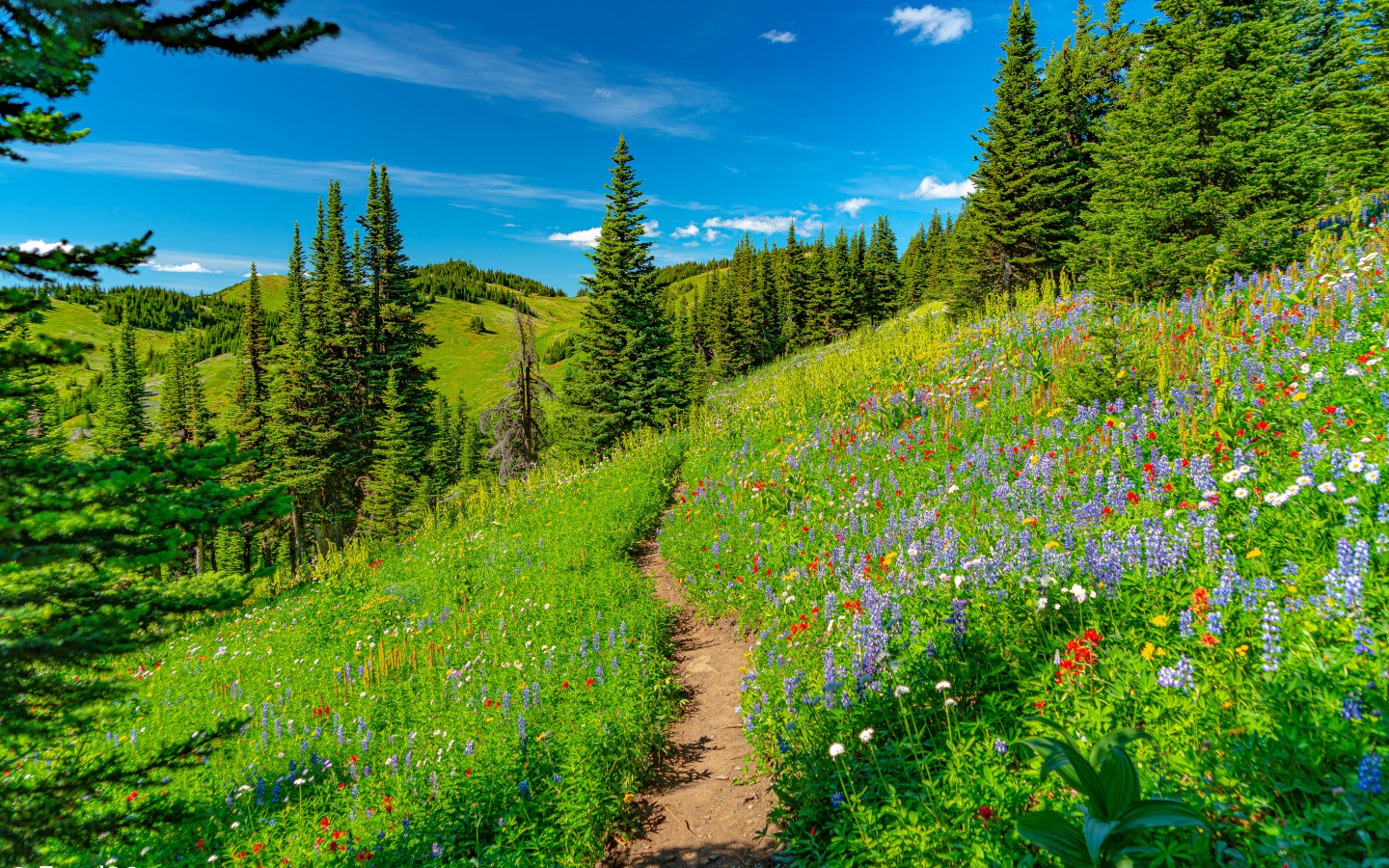 Beautiful Green Grass and Trees on Slope - 1440x900