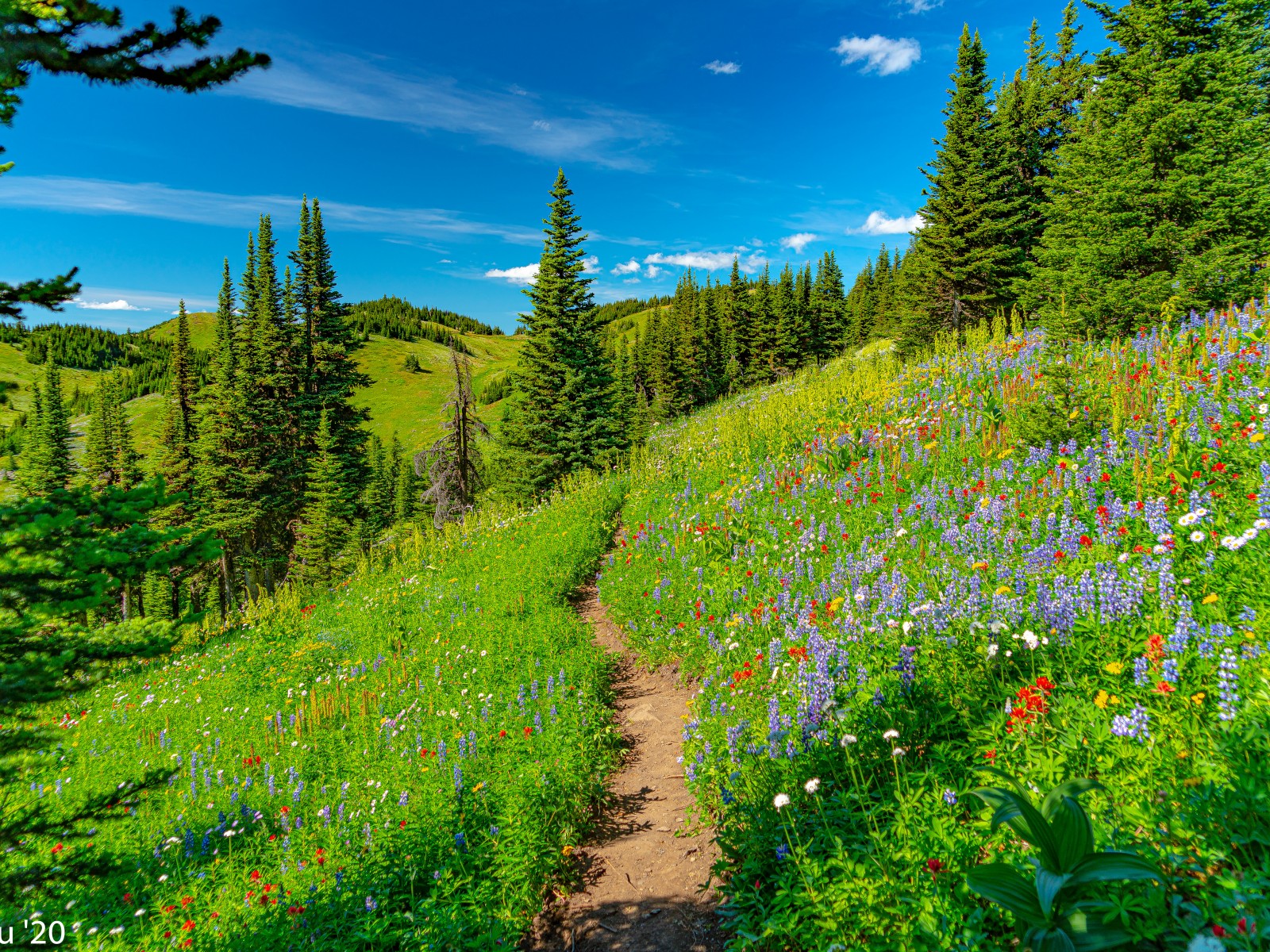 Beautiful Green Grass and Trees on Slope - 1600x1200