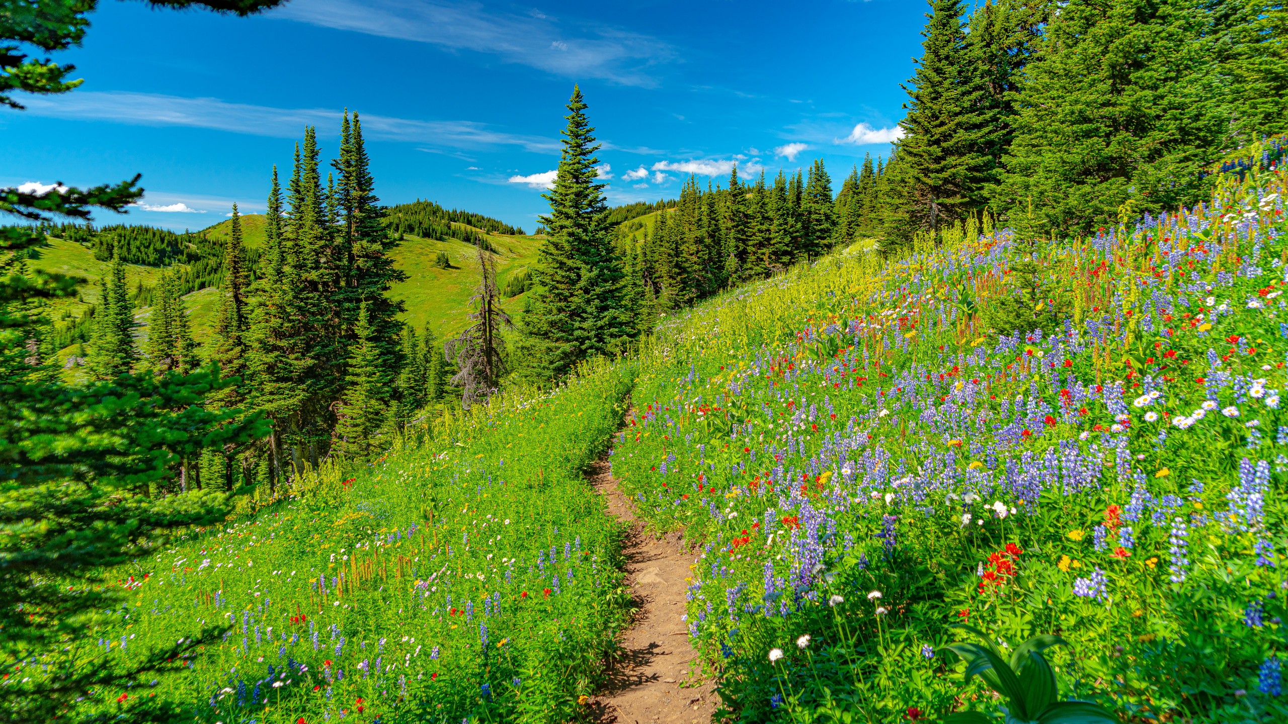 Beautiful Green Grass and Trees on Slope - 2560x1440