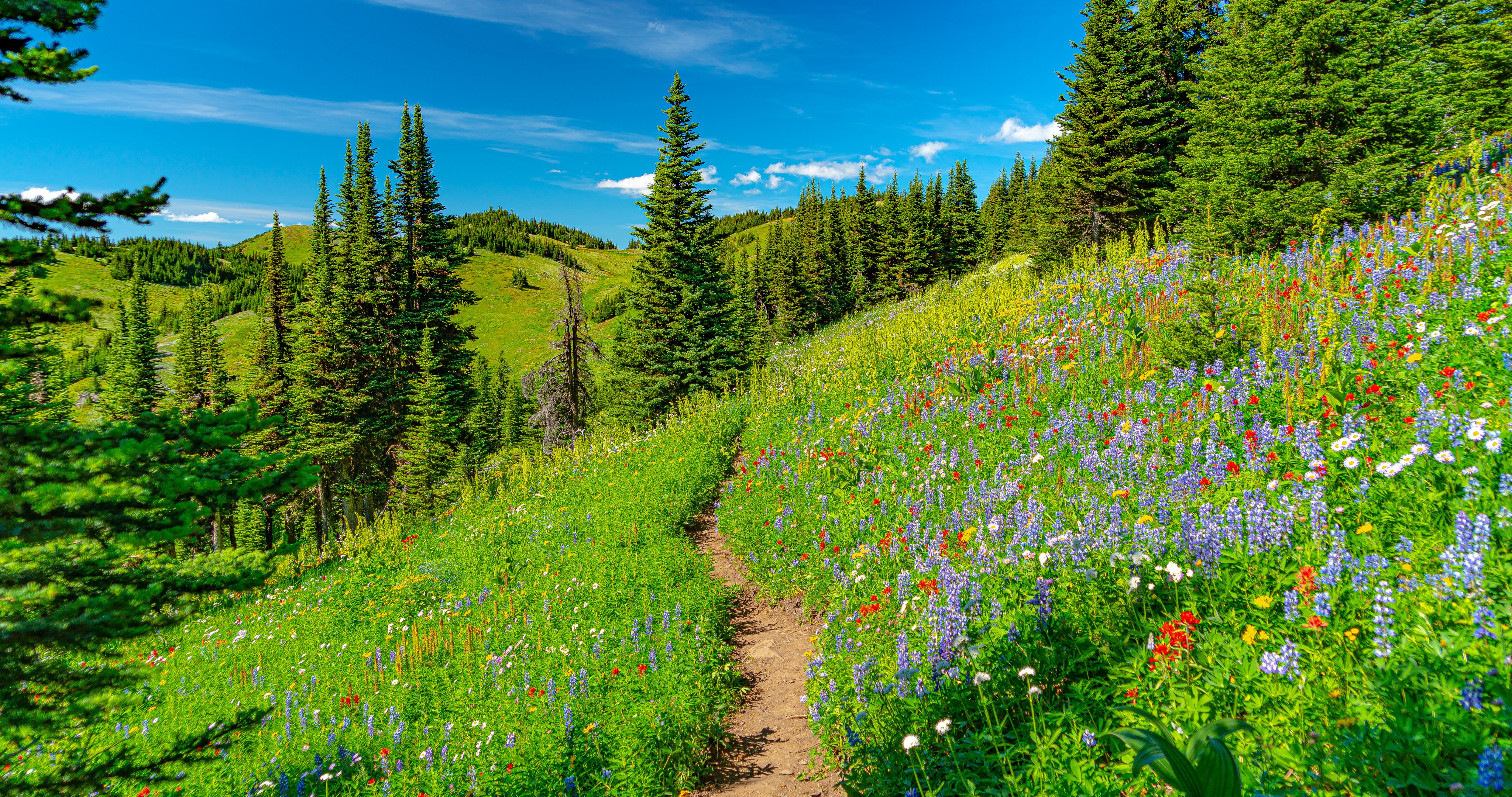Beautiful Green Grass and Trees on Slope - 4096x2160 4K