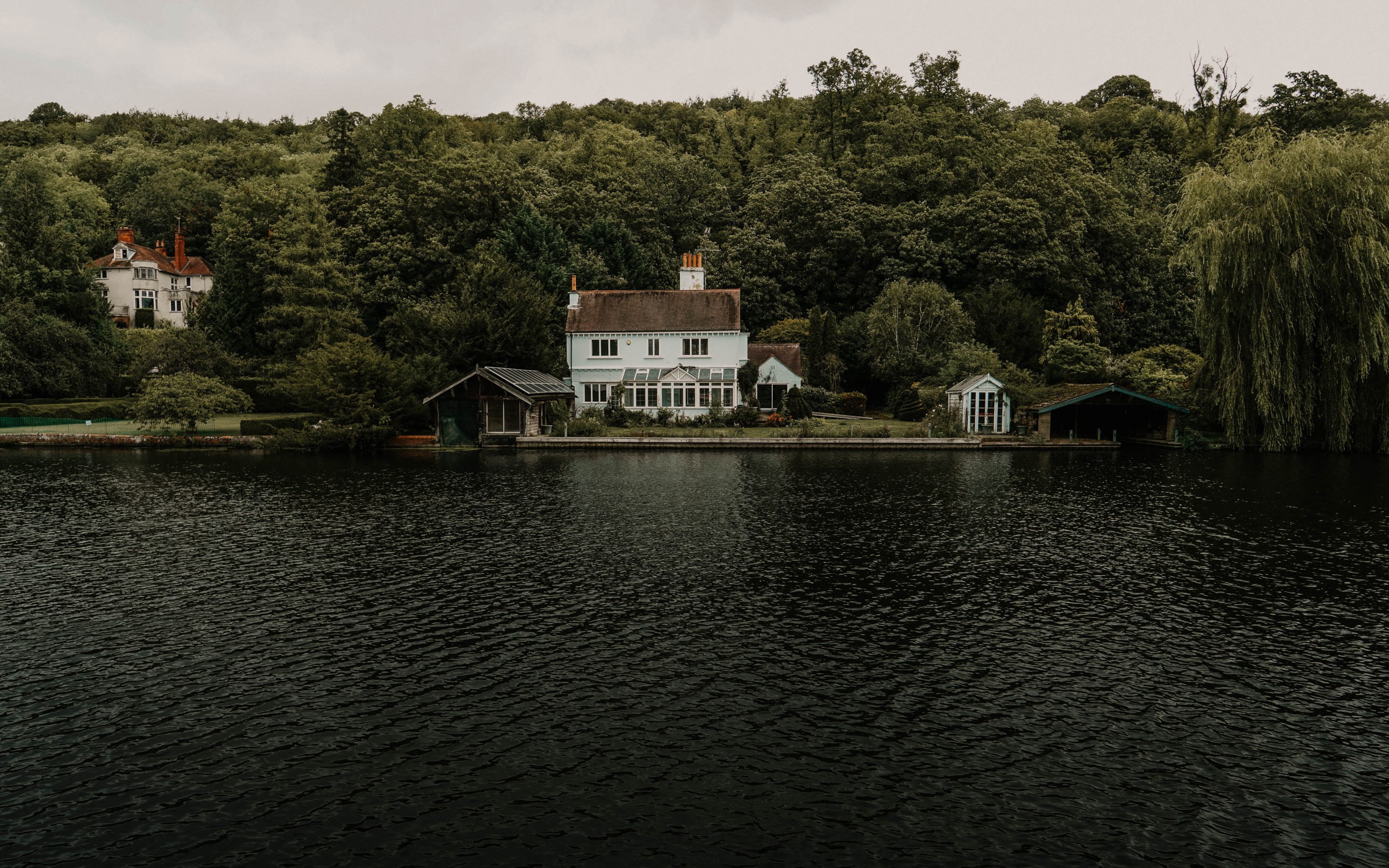 Beautiful Lake and Green Forest with Big House on Shore - 2880x1800