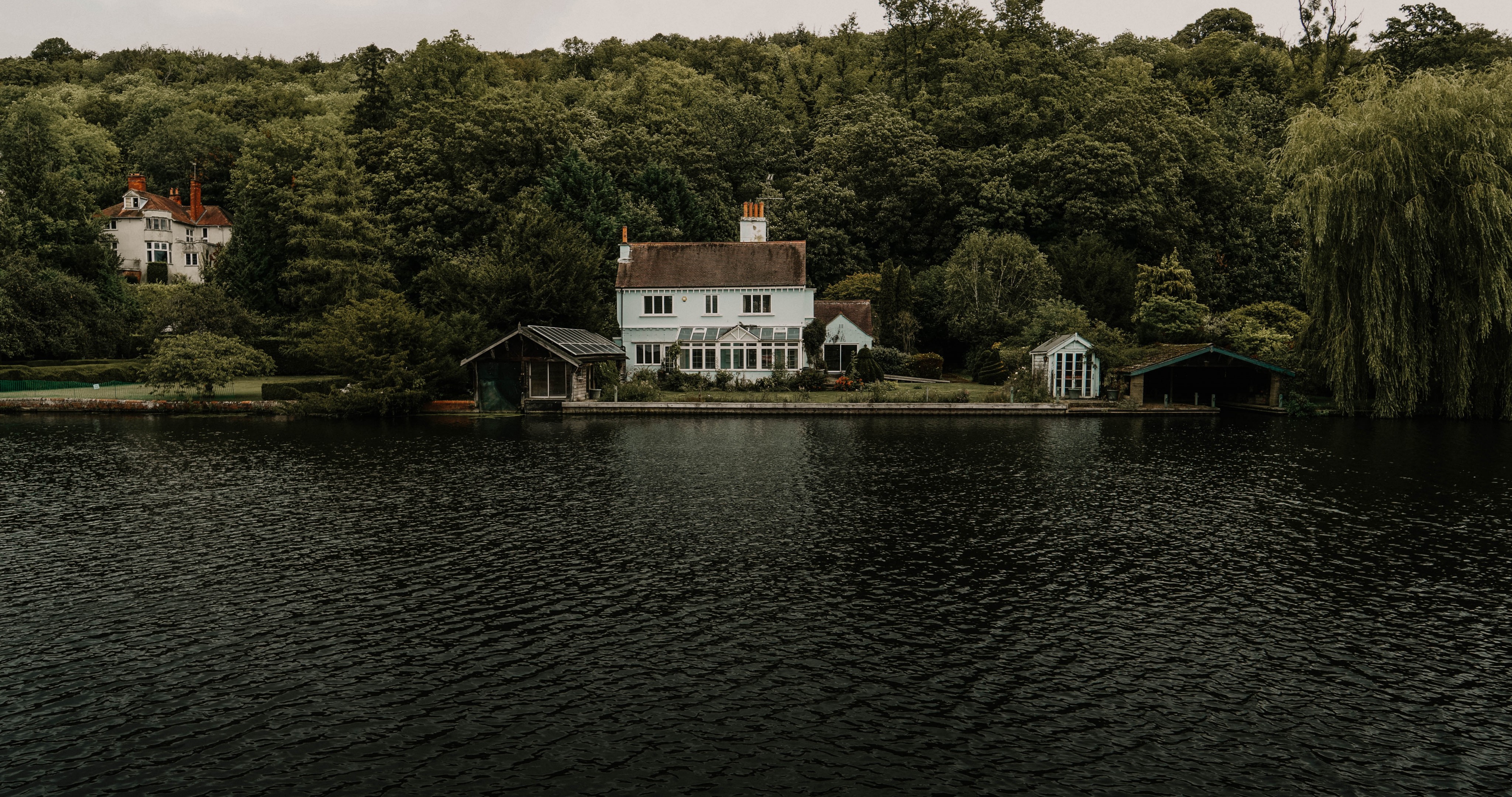 Beautiful Lake and Green Forest with Big House on Shore - 4096x2160 4K