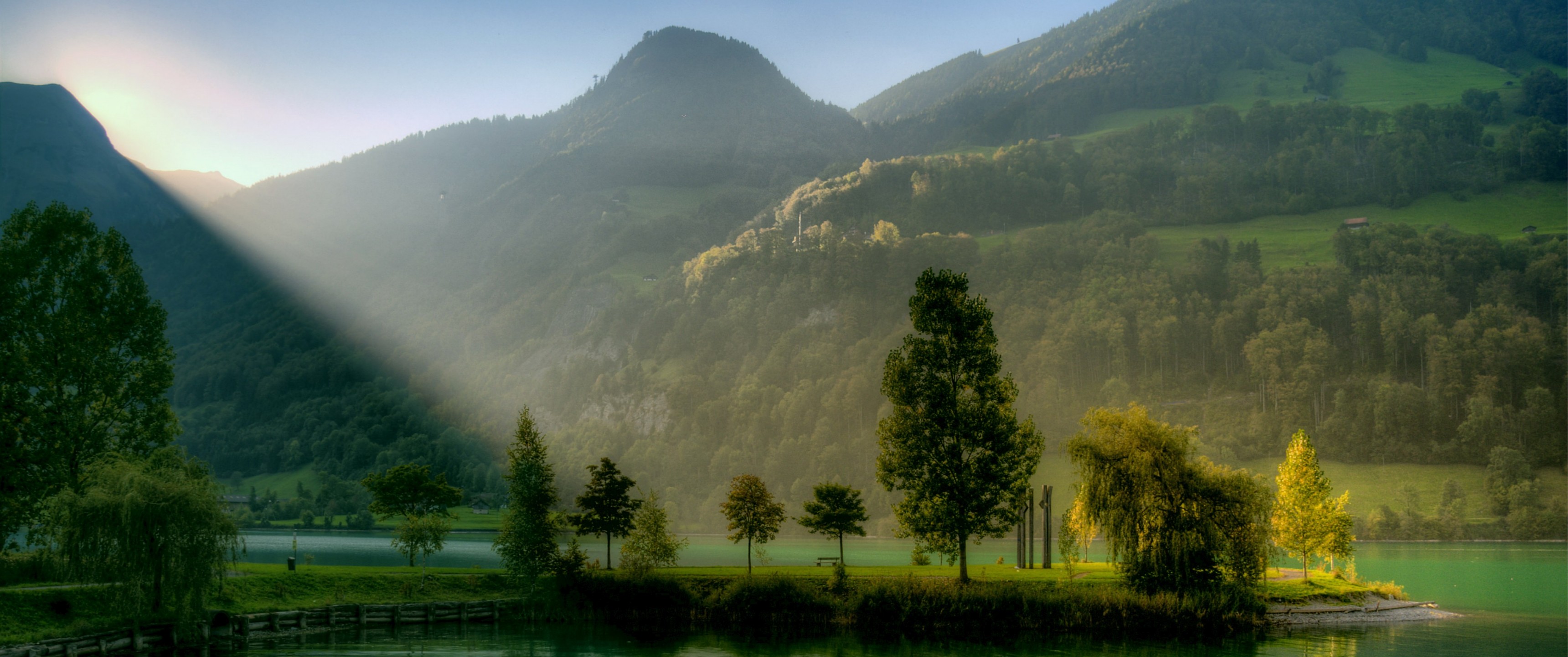 Beautiful Lake Green Forest and Mountains - 3440x1440 Ultra WQHD