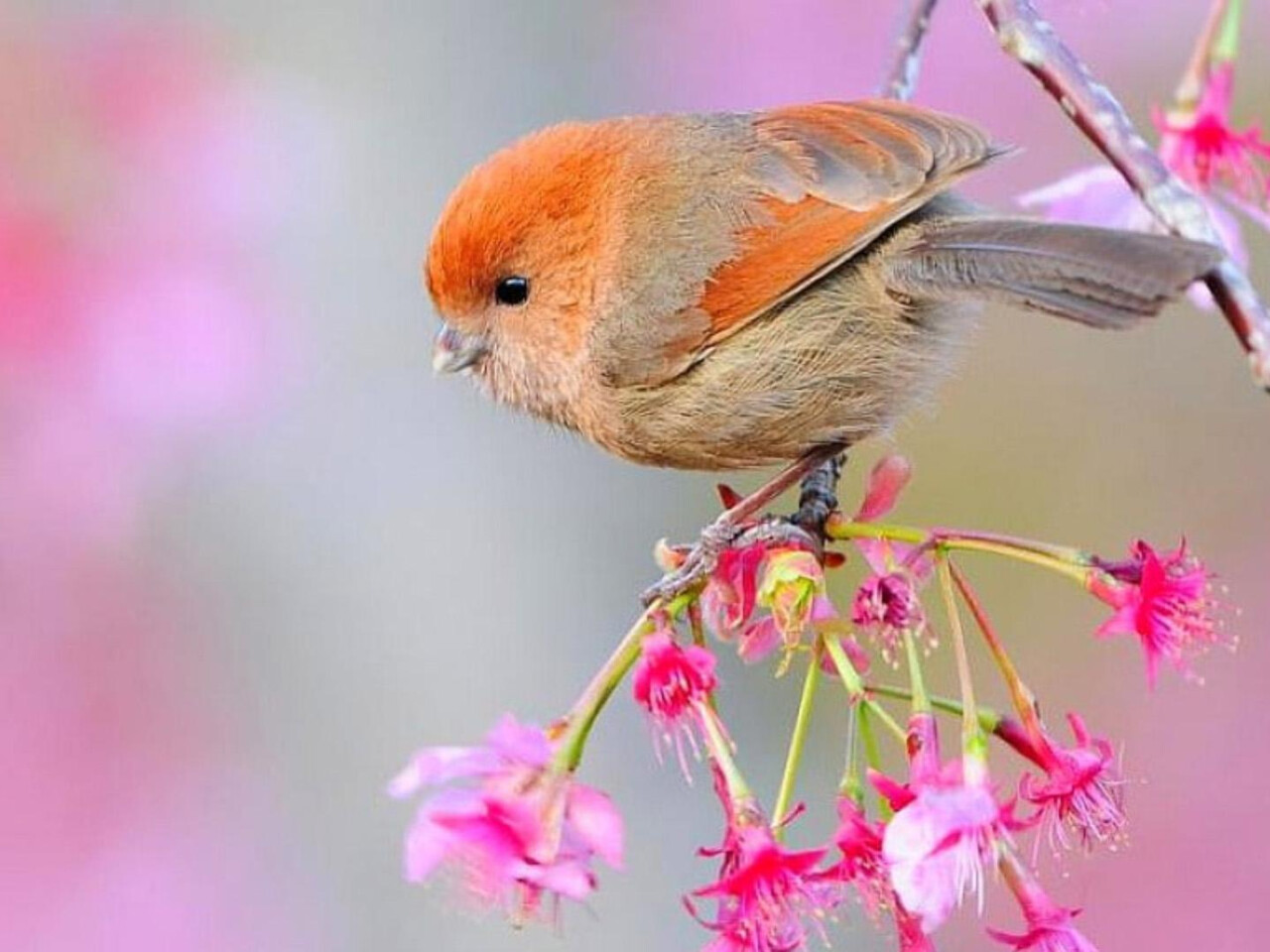 Beautiful Little Orange Brown Bird on Branch - 1280x960