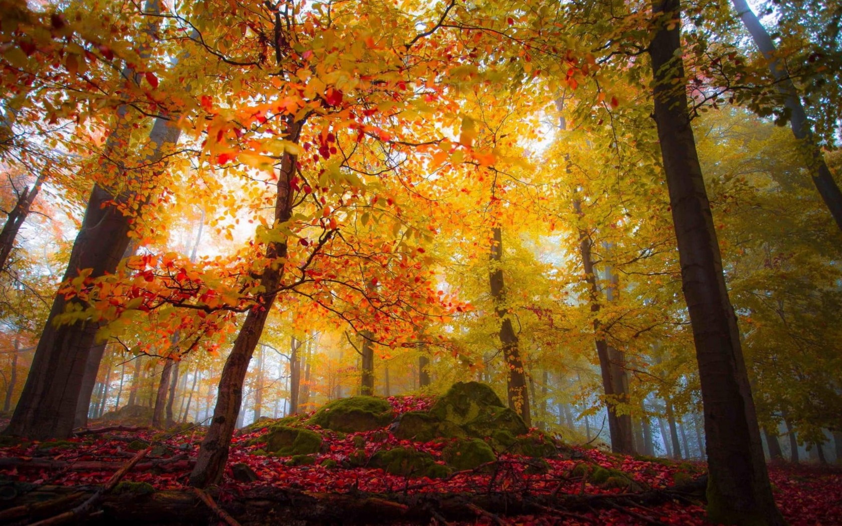 Beautiful Maples in Autumn Forest - 1680x1050