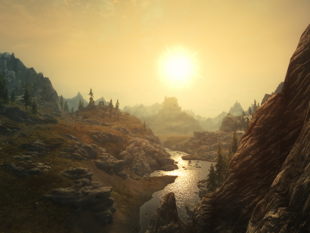 Beautiful mountain valley and river in 3D Art - 1280x960